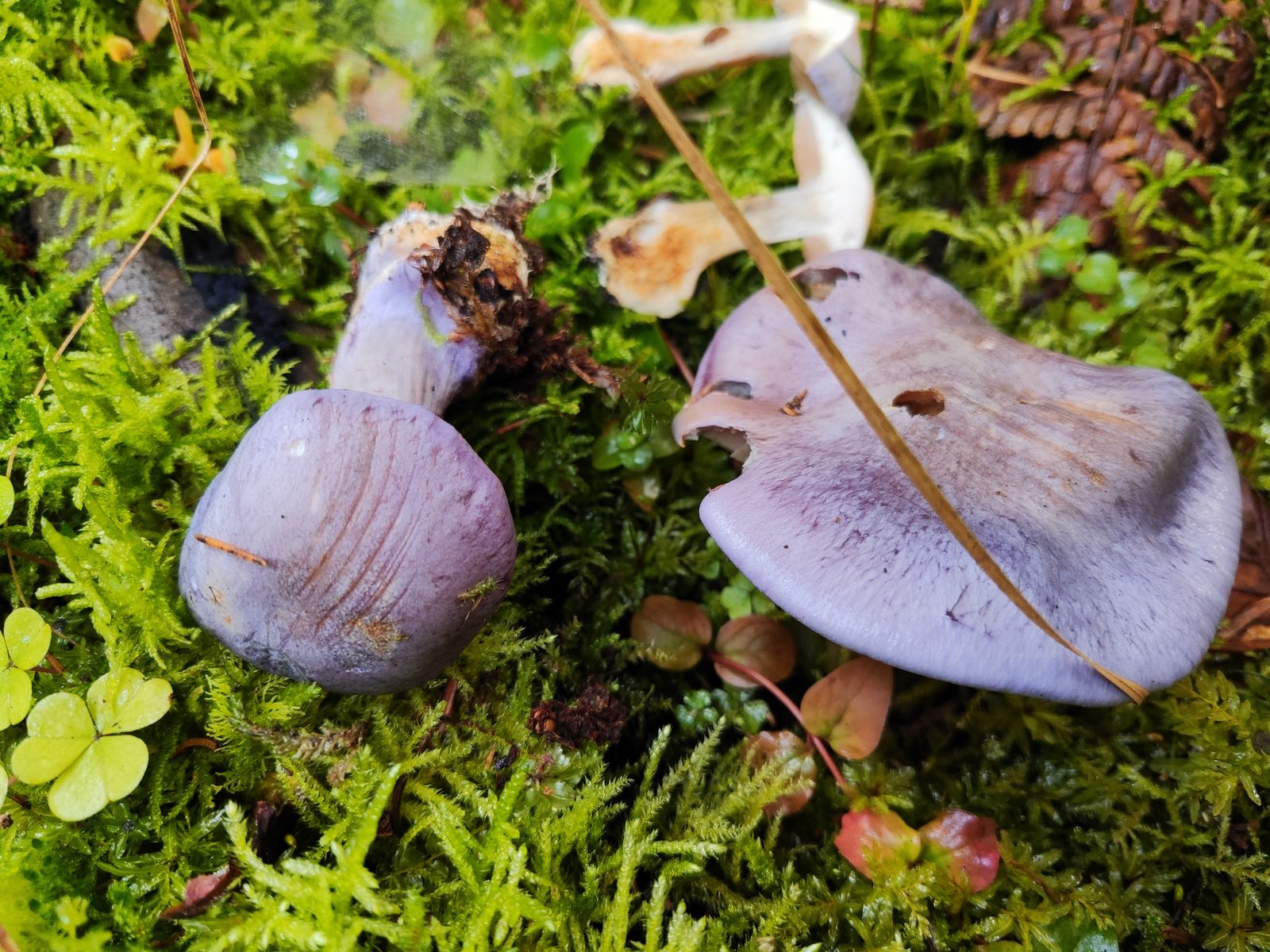 Mach ich nochmal, danke für die Geduld. Was mir aber wieder aufgefallen ist: selbst die Lamellen ganz junger Fruchtkörper sind kaum violett. Das kontrastiert teilweise sogar recht deutlich mit der Hutfarbe. Passt das zu terpsichores?