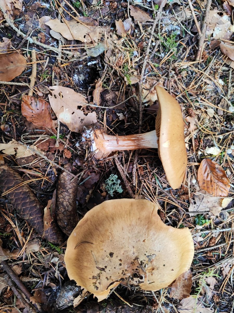 Hier der erste Fundort: Am Waldwegesrand neben Lachsreizkern bei alten Tannen: