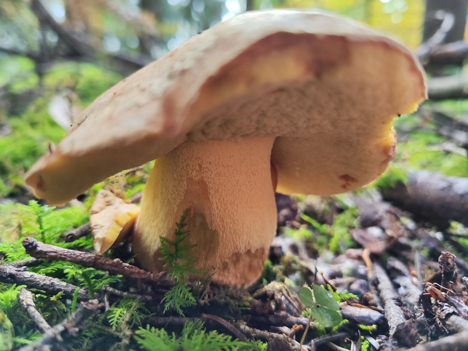 das wird ein Butyriboletus sein. Du kannst ja ein Schnittbild machen, ich tippe aber mal auf B. subappendiculatus. Den finde ich bei mir sehr regelmäßig rausgedreht oder abgeschnitten und liegengelassen in Wald. Ich gehe davon aus, dass das der Fall ist weil er bei mir an sehr guten Steinpilzstellen wächst und die Leute ihn von oben für letzteren halten, dann aber beim Umdrehen das kräftige gelb sehen und ihn deshalb im Wald lassen.