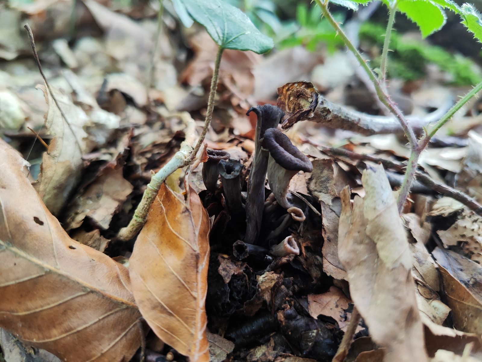 16. Die Trompetenpfifferlinge ziehen jetzt auch an tiefergelegenen Stellen kräftig an, an höher liegenden sind schon gute Ernten eingefahren.
