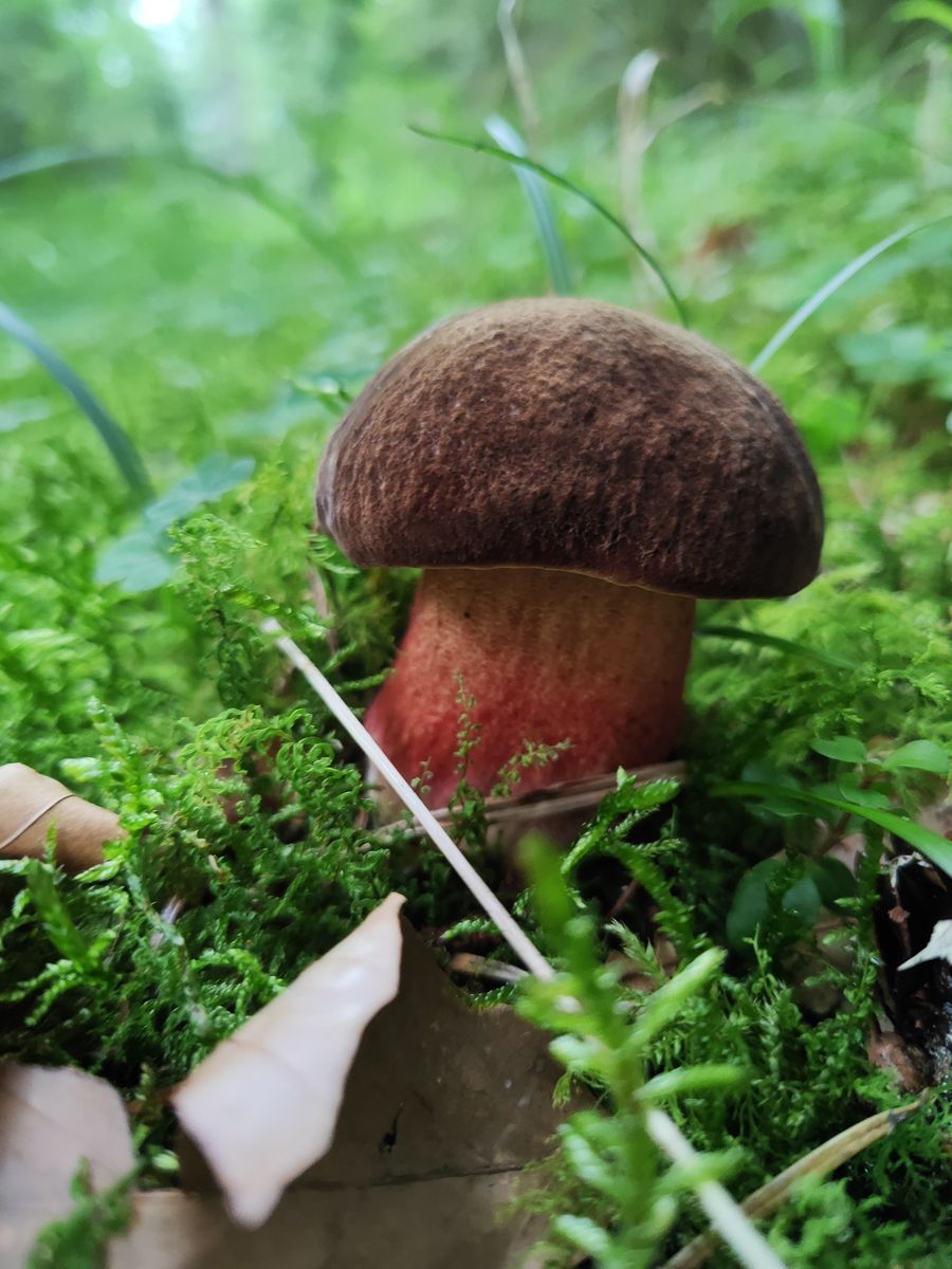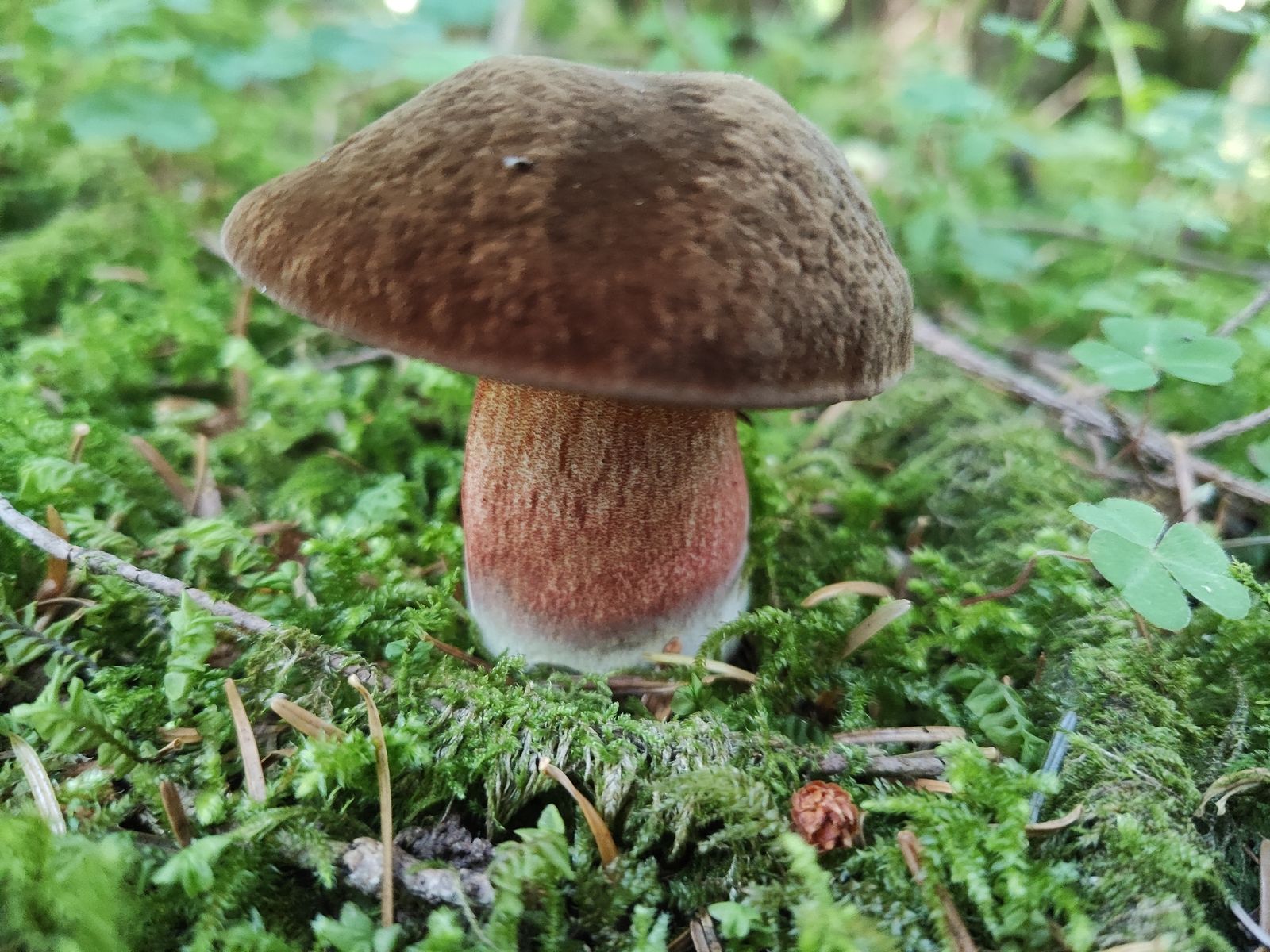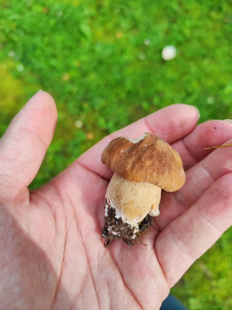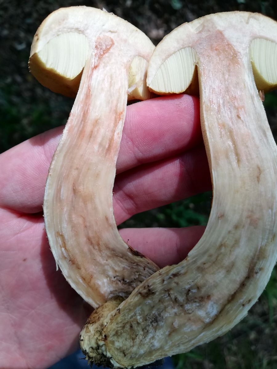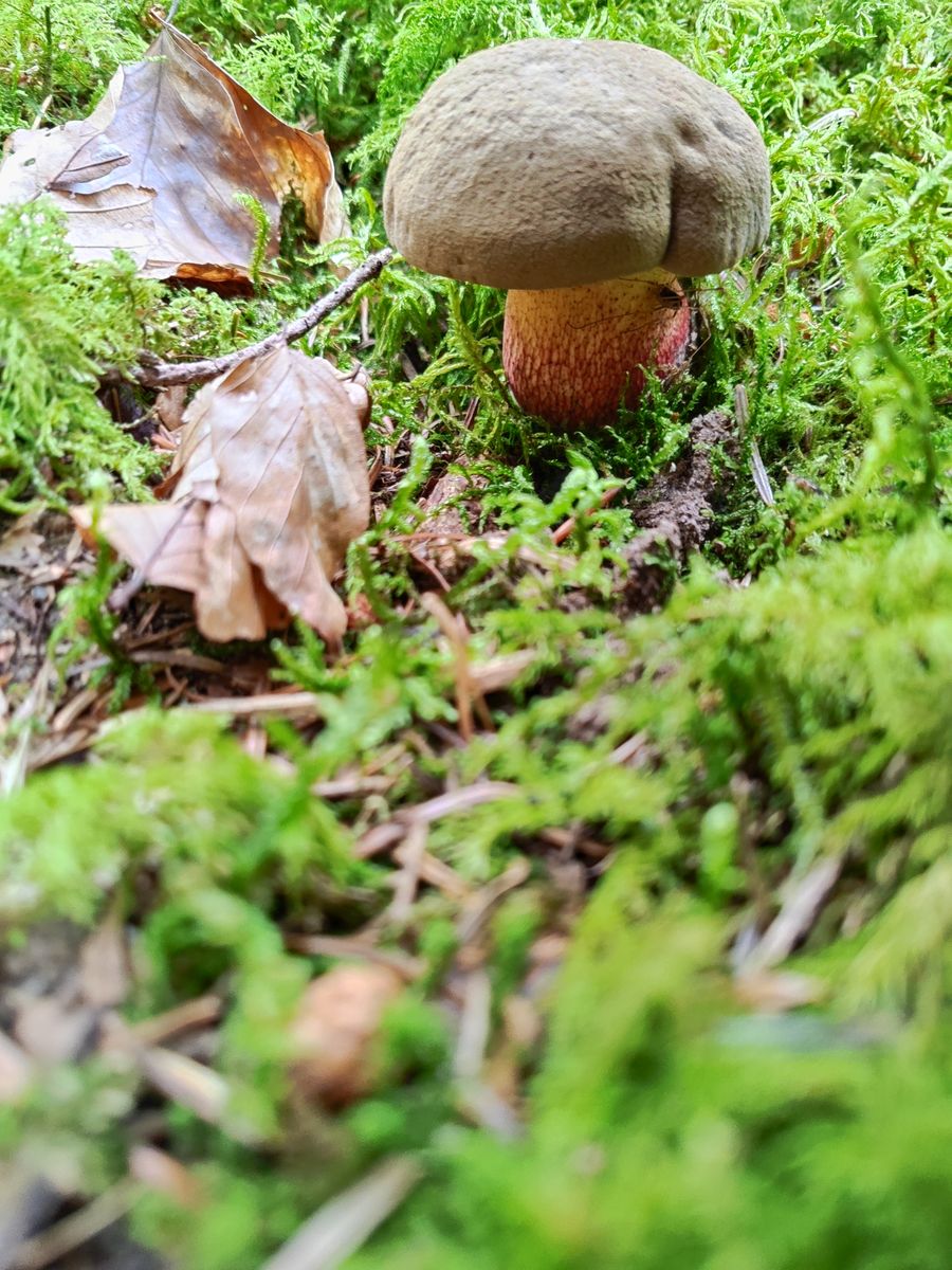 1. Leccinum crocipodium im Hauswald. Über die habe ich mich riesig gefreut, da hat nämlich vor 2 Jahren der Sturm eine wunderschöne Eiche gelegt, die ich für den Mykorrhizapartner hielt, worauf sie 2 Jahre lang ausblieben. Jetzt sind sie wieder da, der kleine war schon vom Myzel getrennt, weshalb ich mal das Farbverhalten dokumentiert habe. Die werden ganz kurz (<10s) kräftig rot bevor sie schwärzen.