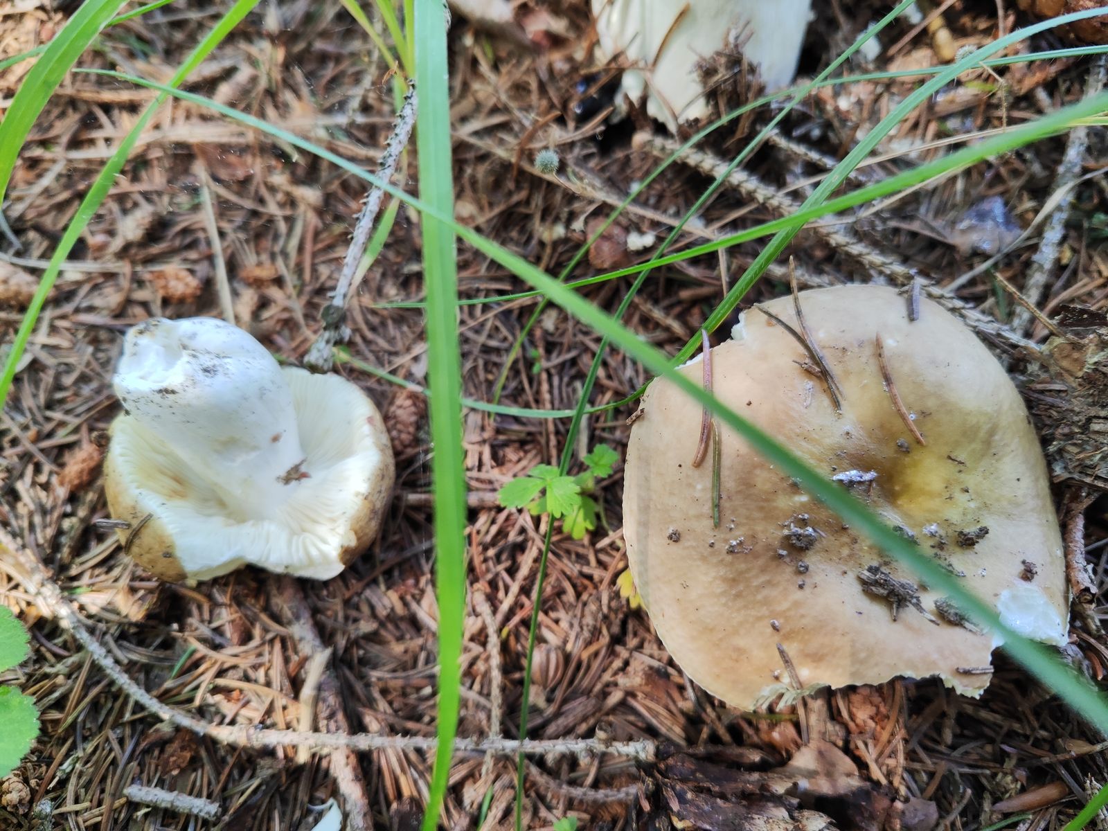 7. Hübsche, milde, gelbsporige Täublinge bei Fichte auf Kalk