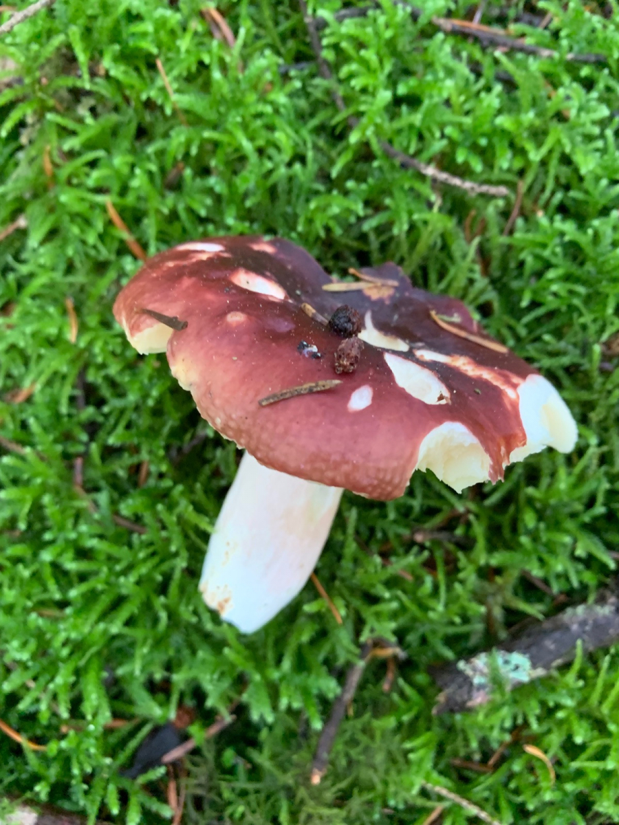 Dann gings über den Bach, auf der anderen Seite den Hang hoch und obwohl der Wald absolut gleich (vielleicht ein bisschen feuchter) aussieht, steht auf einmal alles voll mit alten und jungen Hexen, Maronen und auch reihenweise Täublingen.