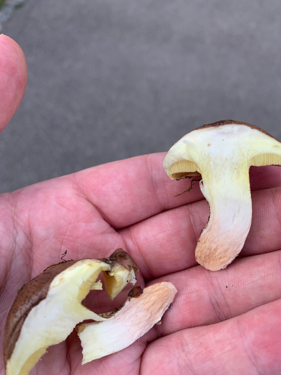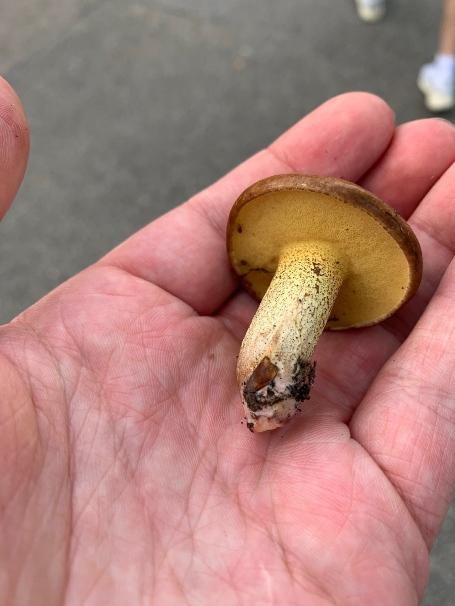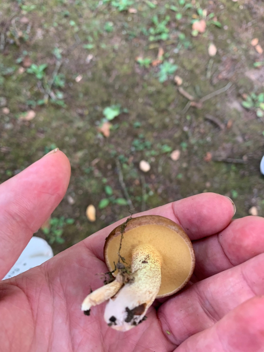 Als Bonus gibts noch diesen Röhrling, denn ich für Butyriboletus subappendiculatus halte, ich habe ihn gepflückt und weggeworfen gefunden und ihn im Wald aufgehängt, dass er sporen kann. Er hatte an der Stielspitze ein gelbliches Netz, dass man auf den Fotos leider nicht sieht.