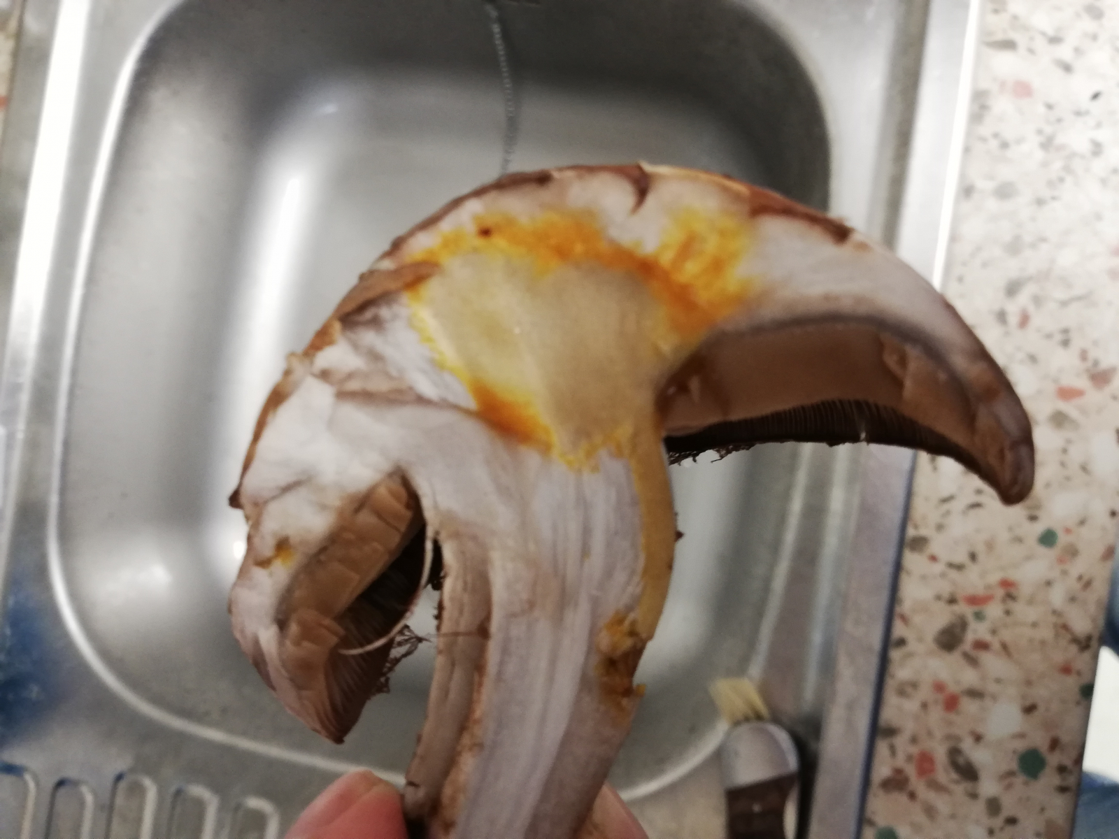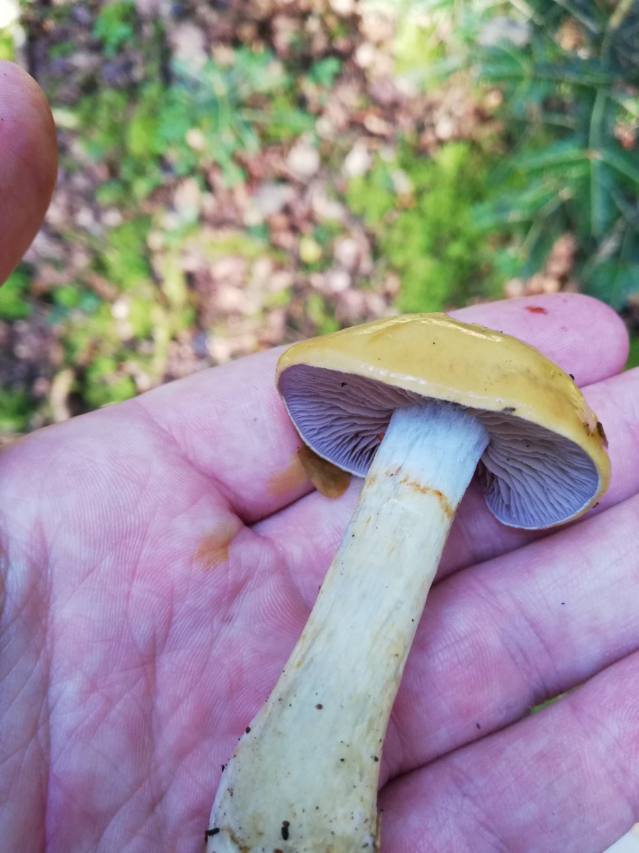 Ich dachte die Schleimfüße hätten deutlich schleimige Stiele, es war eigentlich auch recht feucht, gestern hat es gut geregnet. Ganz trocken war der Stiel natürlich nicht aber das hatte ich noch als normale moosfeuchte abgetan. Der Standort war aber wirklich in so einem kleinen dichten Fichtenwäldchen mit so ca 50-100 cm hohen Fichten unter denen man nach Steinis sucht. Laubbäume waren schon in dem Wald aber schon ein ganzes Stück entfernt, kann C. delibutus auch unter Fichte?