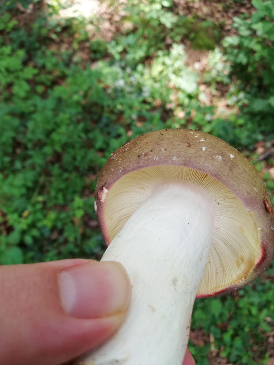 Dieser Täubling sah mit seinem braunen Hut mit violettem Hutrand recht markant aus also frage ich einfach mal: lohnt sich da eine Geschmacksprobe oder verbrenn ich mir da sowieso den Mund?