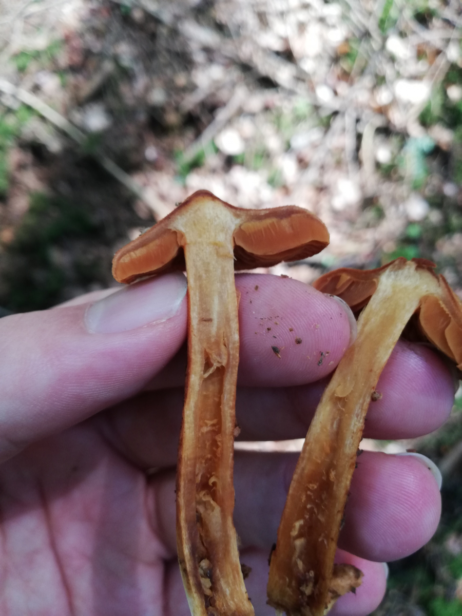 Fundort war auf einer Wiese, buchstäblich mitten in einem Hexenring mit Nelkenschwindlingen, ist das ein Saftling? Und wie gehe ich da weiter vor beim Bestimmen? Nebenbei war das einer von mehreren auf der Wiese deshalb dachte ich es ist ok einen zur Bestimmung abzuschneiden.