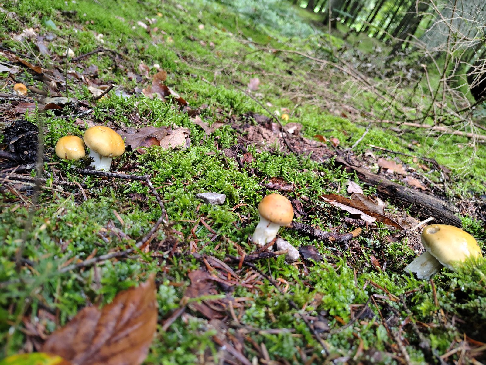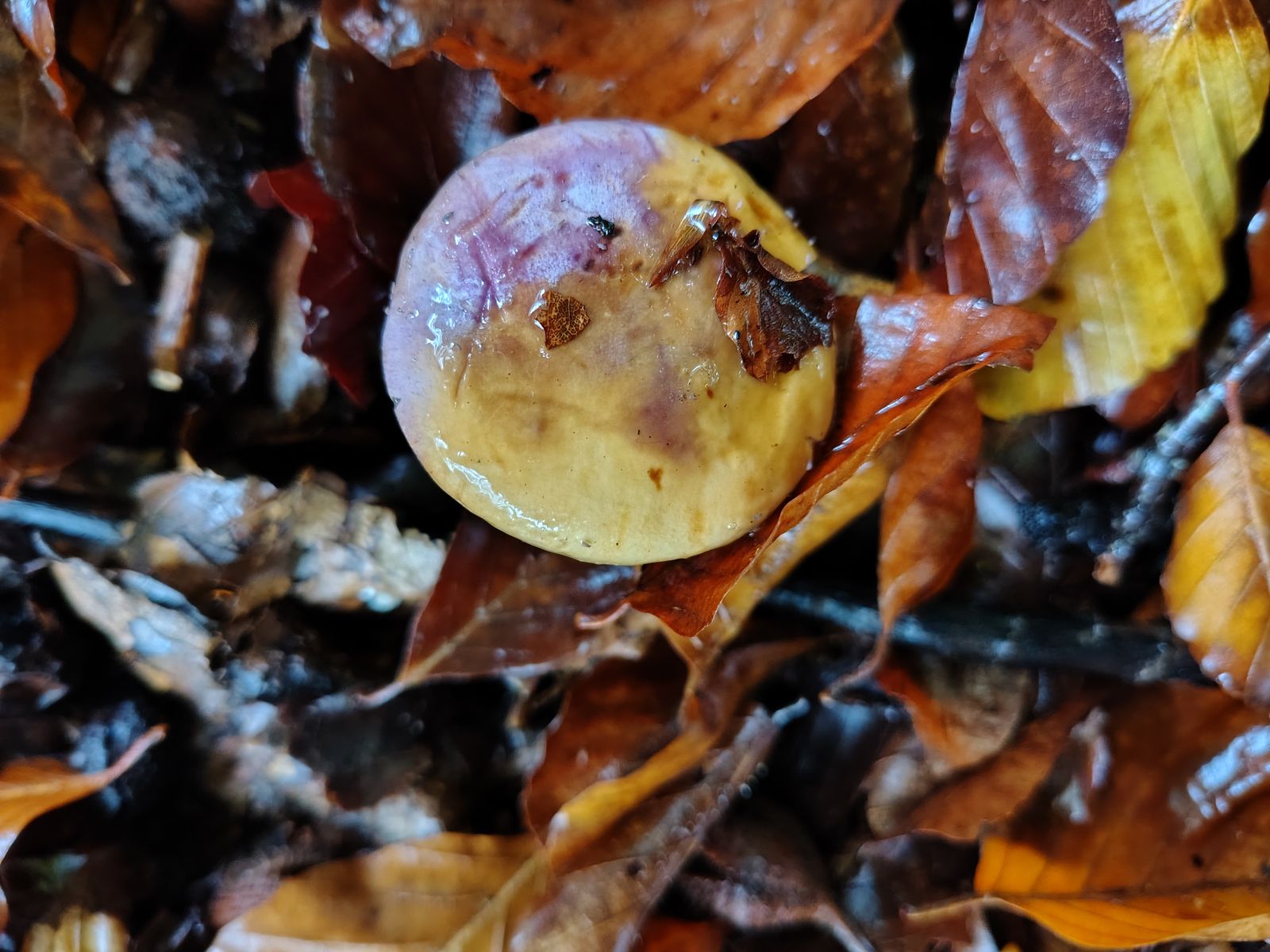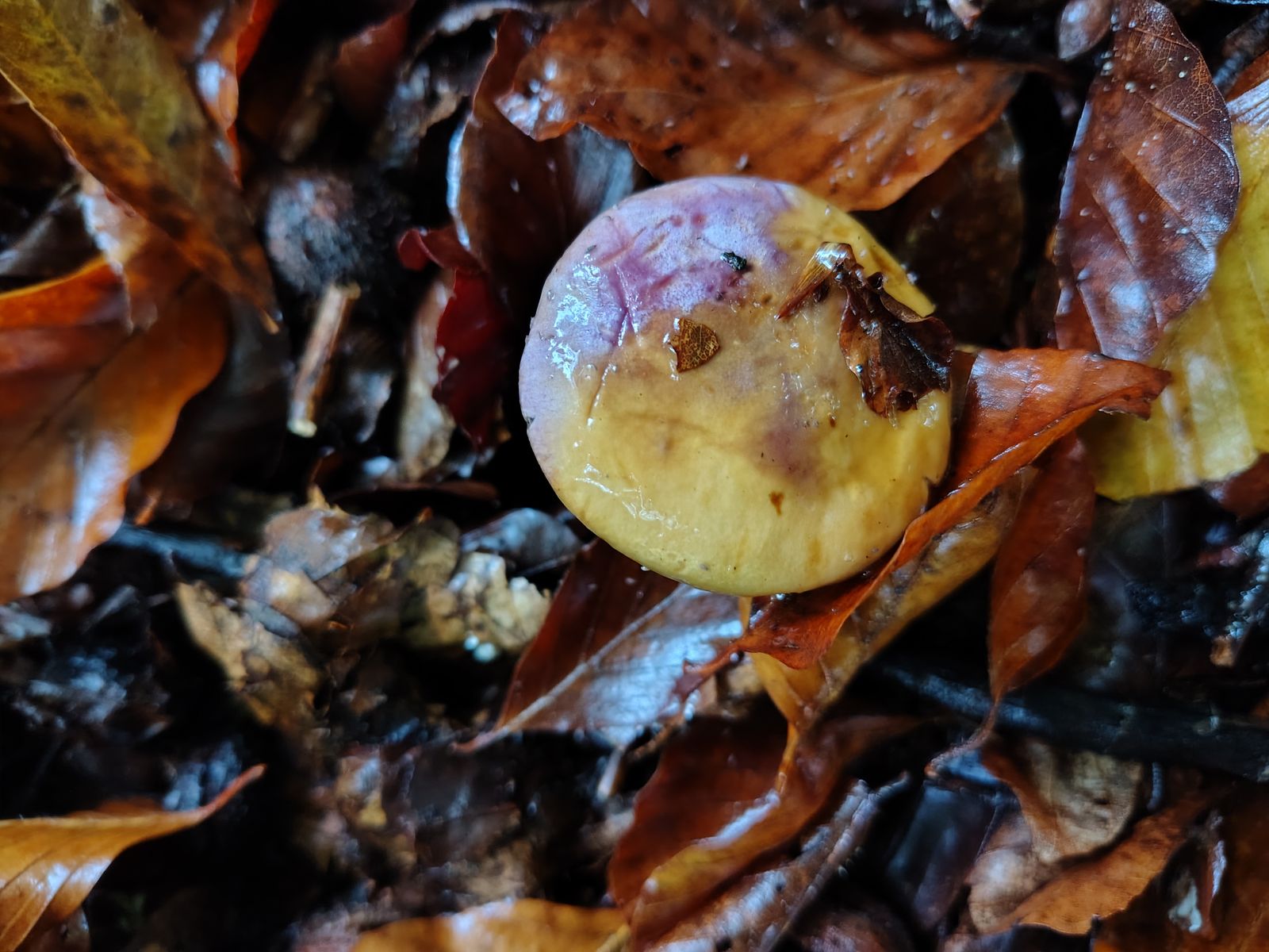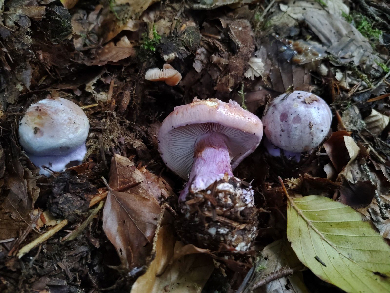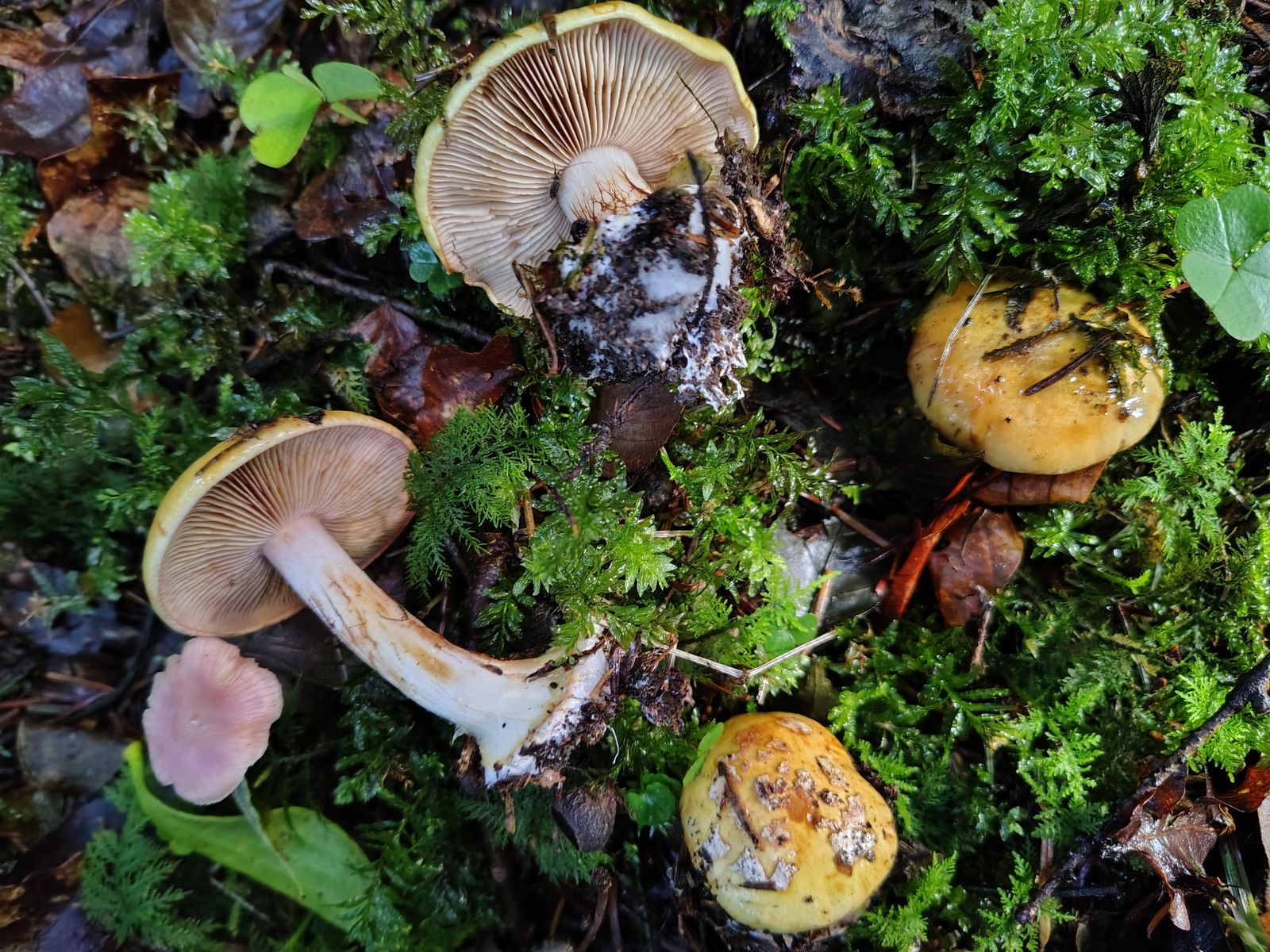 5. So. Ich denke einer aber eventuell auch mehrere herrliche Calochroi. Bei uralten Tannen, jungen Fichten und einer 5m Buche auf kräftigem Kalkboden ein riesiges Myzel dieser Art mit bestimmt 40 Fruchtkörpern. Erstmal die volle Kollektion: