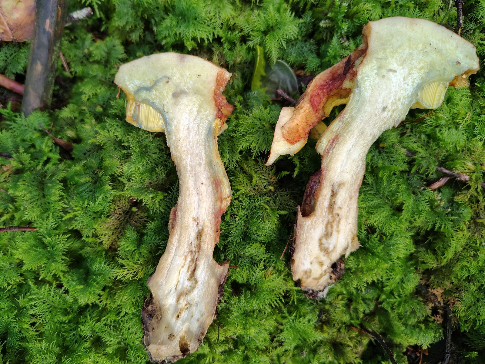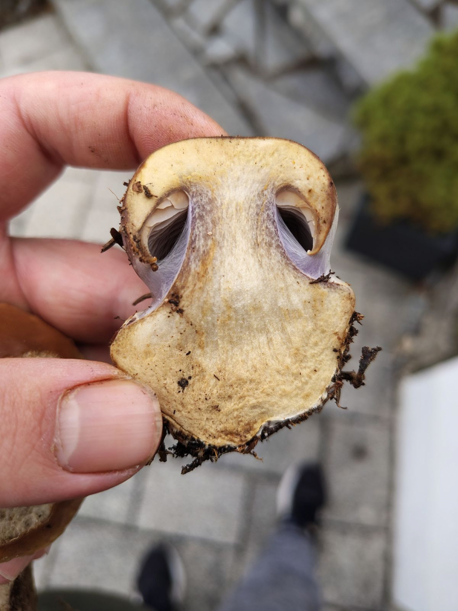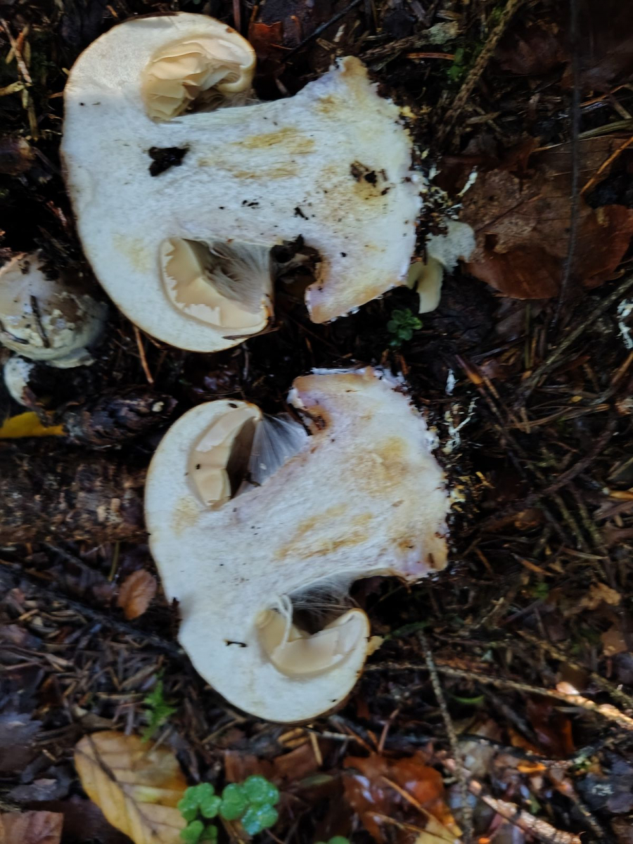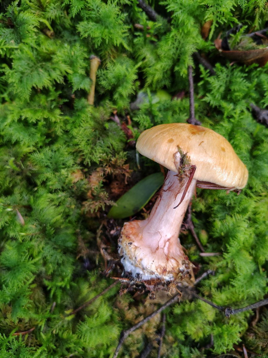 Der muss noch Sporen aber ich könnte mir hier C. cumatilis, den Nadelwaldbruder der Schleiereule vorstellen. Aber darf der so klumpfüßig? Geruch süßlich angenehm