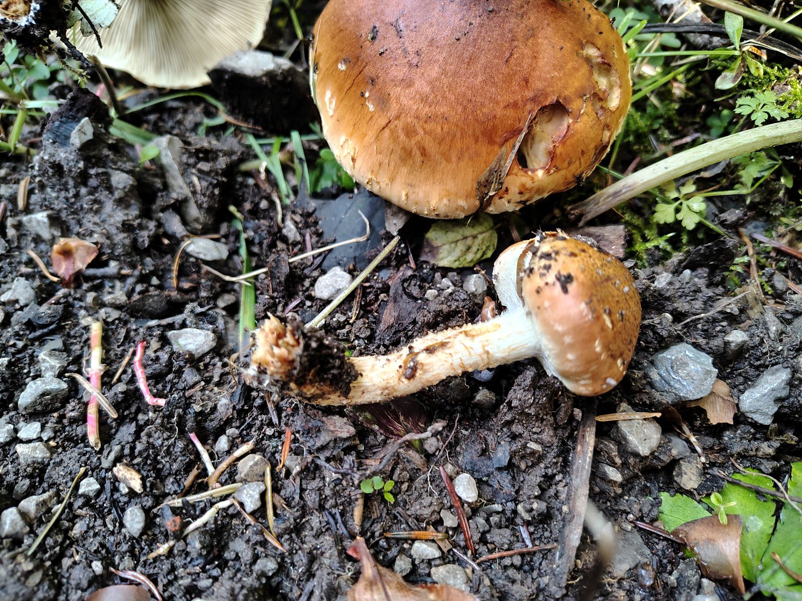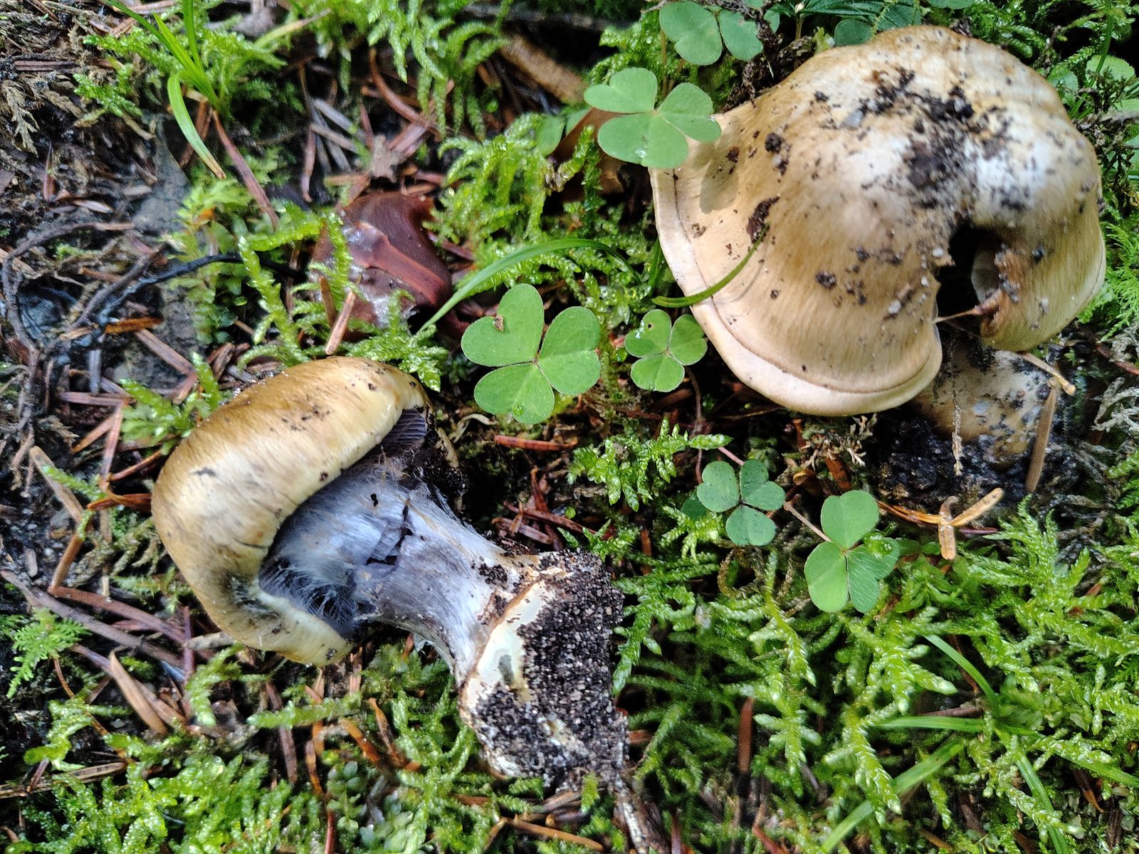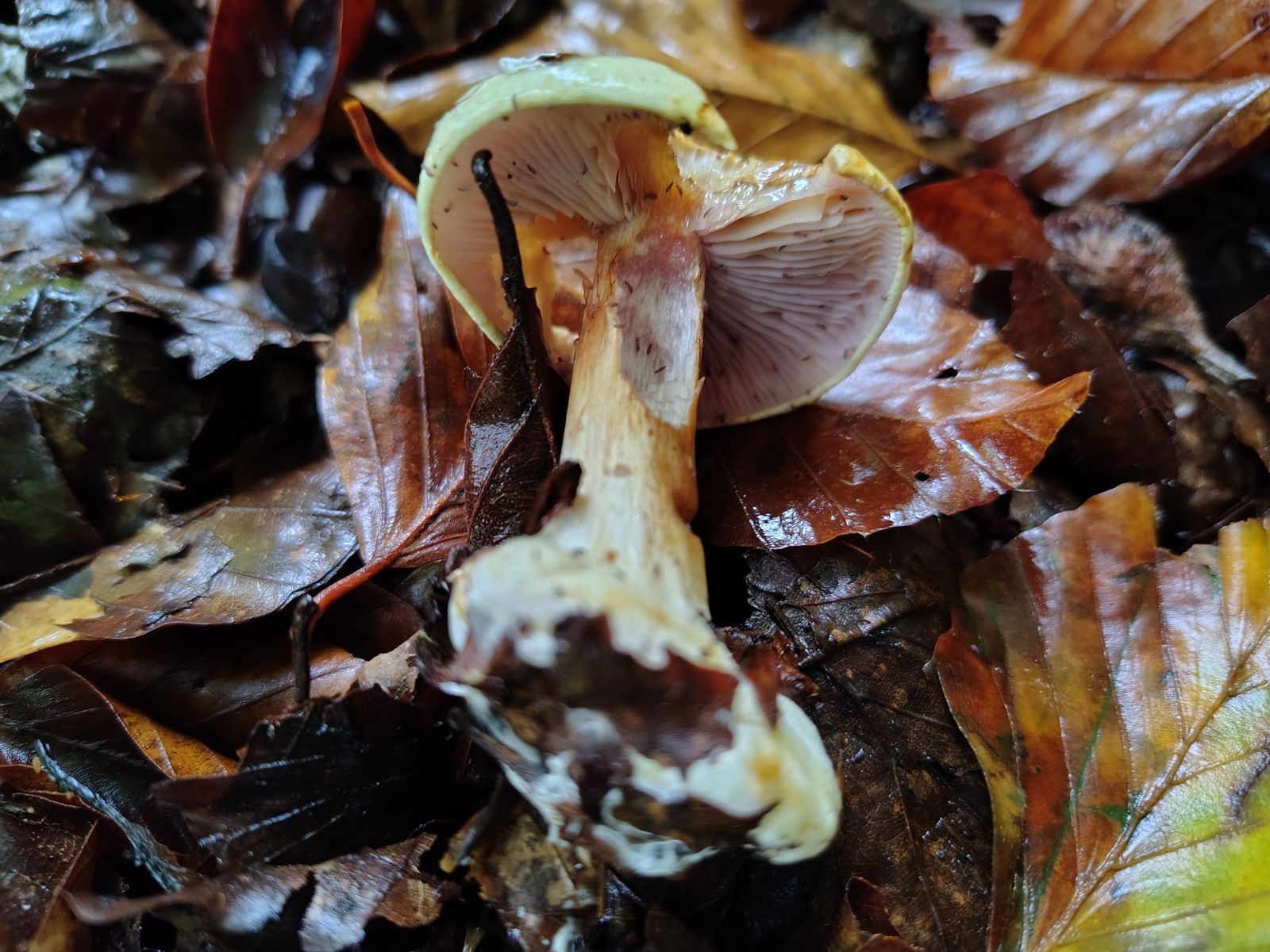 3. Ein Phlegmacium mit so tief im Boden steckender Knolle dass ich sie bei 3 Fruchtkörpern nicht rausbekommen habe. Danach habe ich mich schlecht gefühlt und die anderen 2 stehenlassen. Farben fälblingsähnlich, Könnte das Richtung C. corrosus gehen? Braucht man wahrscheinlich die Sporen oder?