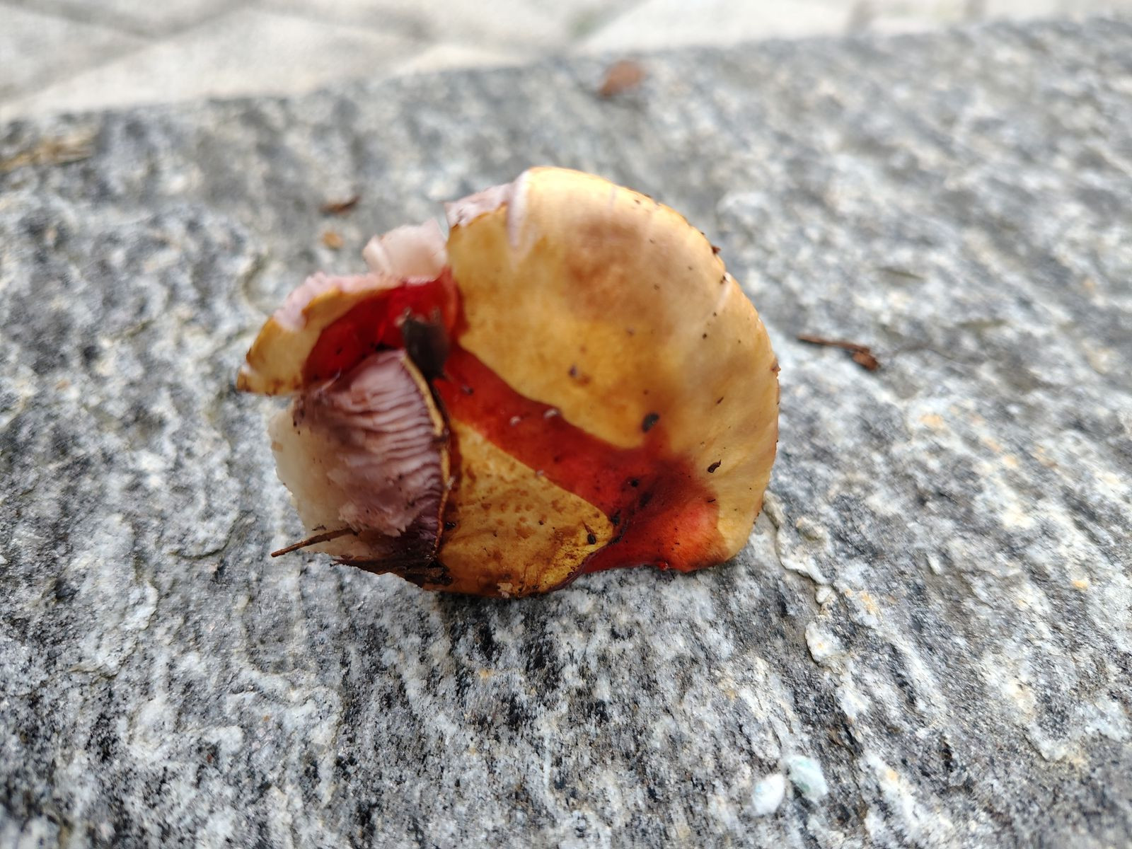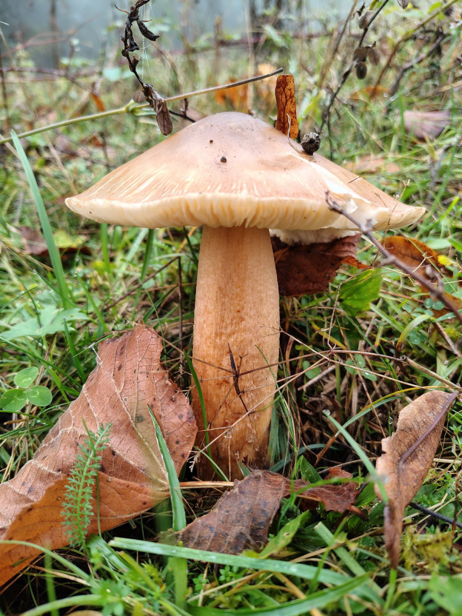 Sichtbare Velumplacken auf dem Hut, kein Violett. KOH auf dem Hut und der Basisknolle orange verfärbend. Ich habe mir C. elegantior angeschaut aber ob da die Farben, geschweige denn die KOH Reaktion passen können - keine Ahnung.