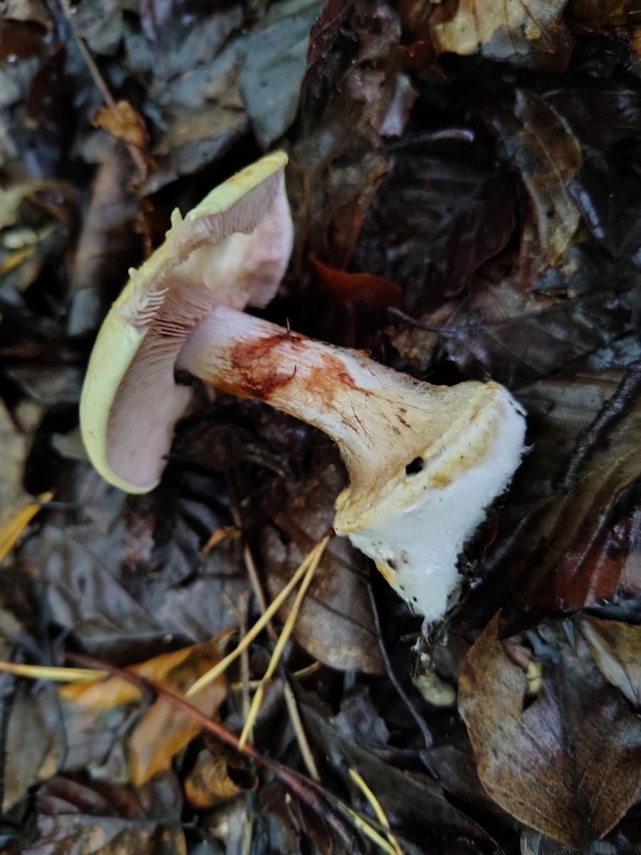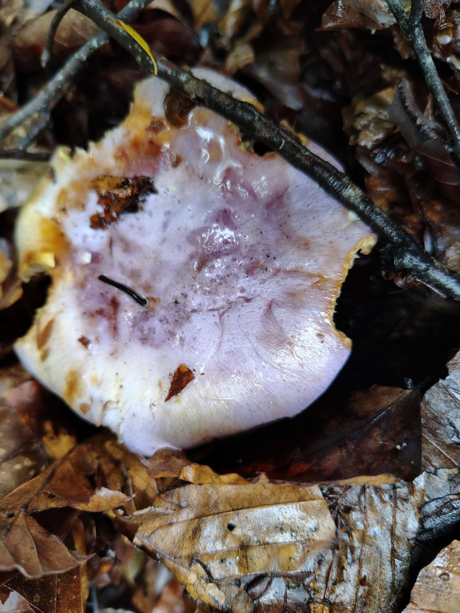 Ich habe an den Fruchtkörpern die ich noch hatte nach violettem Velum ausschau gehalten aber selbst bei dem ganz jungen war nichts zu sehen. Eventuellst hier beim sehr jungen Exemplar am Knollenrand, nur beim frischen Foto zu sehen und jetzt schon weg?