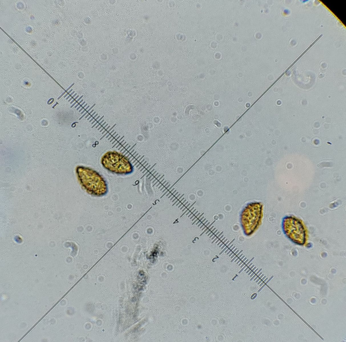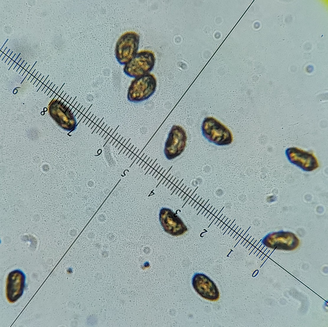 Also bei 5 war KOH auf dem Hut negativ und auf der Knolle, die leider schon halb zerfressen war, würde ich sagen positiv. C. insignibulbus würde passen denke ich, auch das wäre ja ein Superfund. Demnächst gehe ich mal nochmal im Nadelwald nach Phlegmacien schauen. Das sind die Sporen von 2, ich denke C. catharinae kommt gut hin.