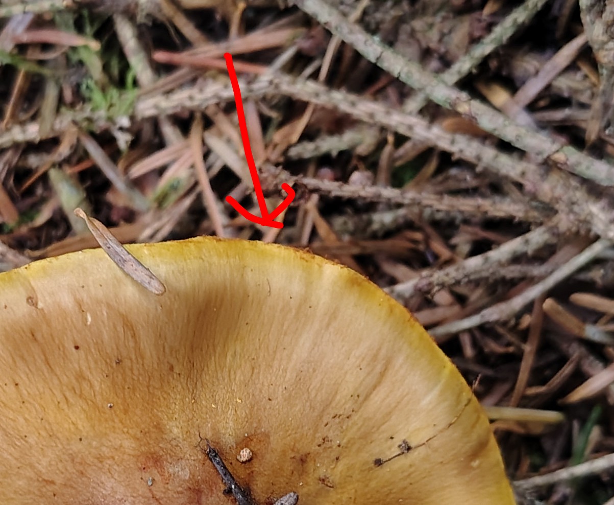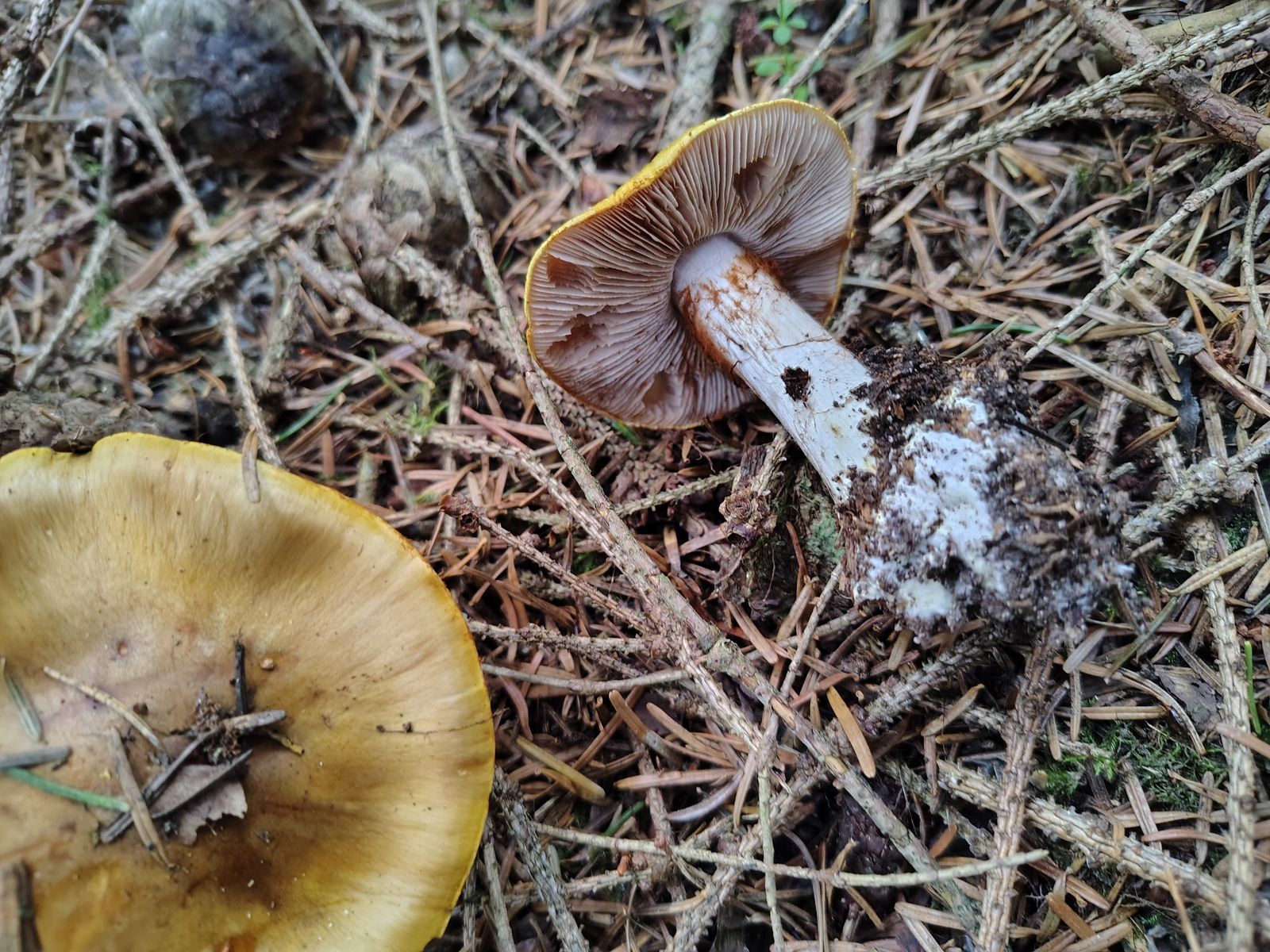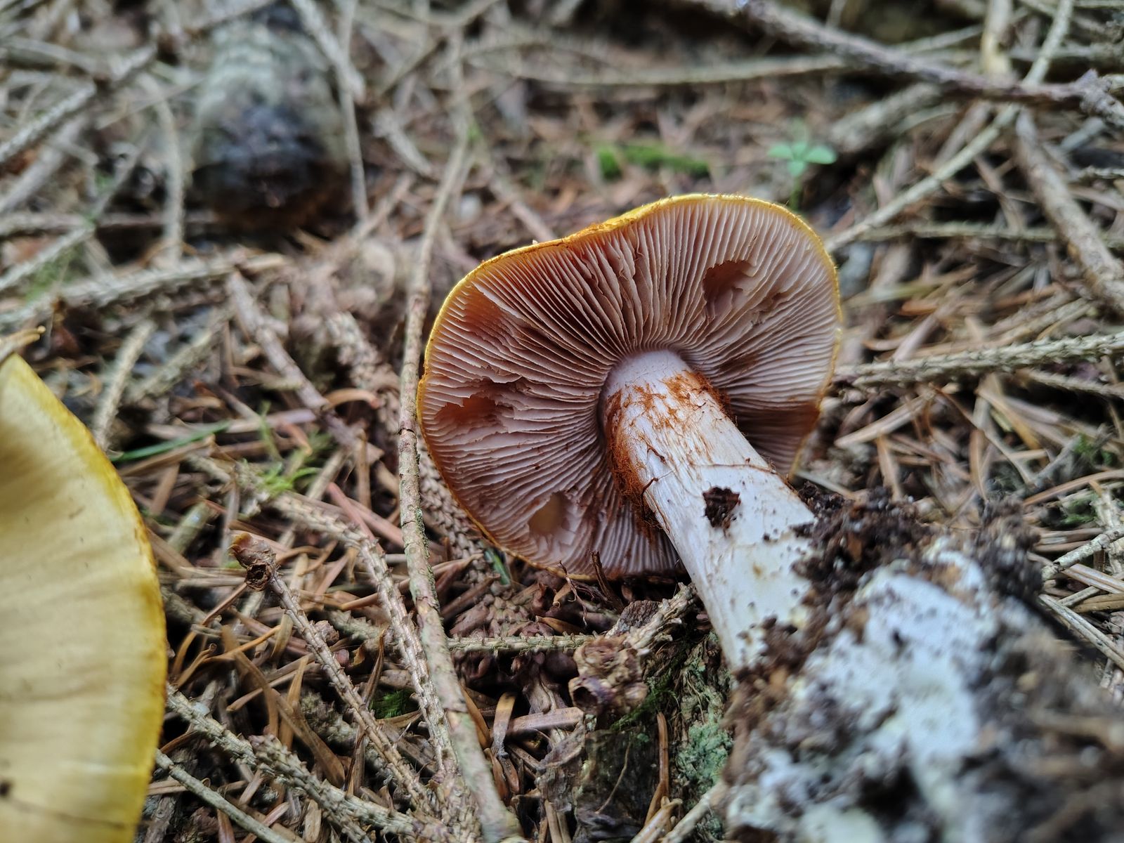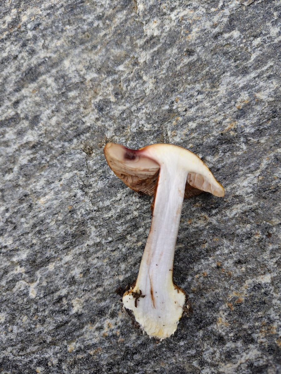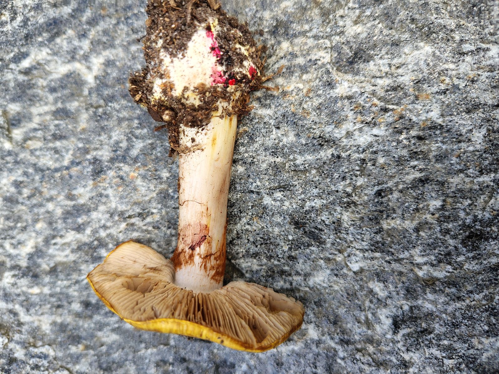 Dann dieses Pilzchen mit unglaublich auffälligen Lamellen und Stielbasis bei dem ich noch völlig ratlos bin
