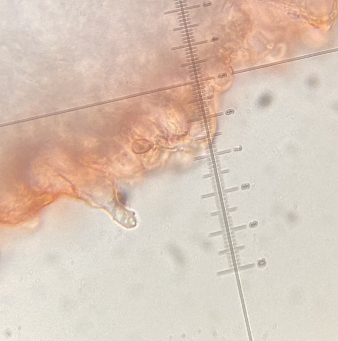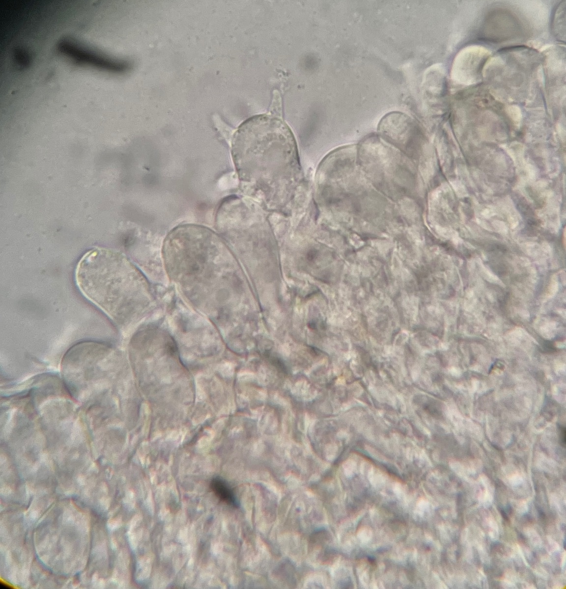 Cheilozystiden schmal flaschenförmig, Enden leicht inkrustiert (?), Schneiden steril