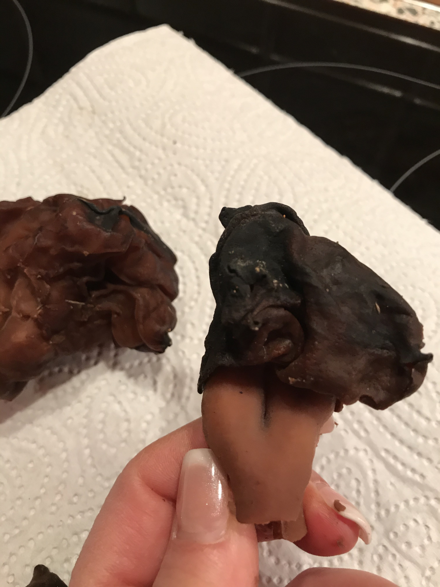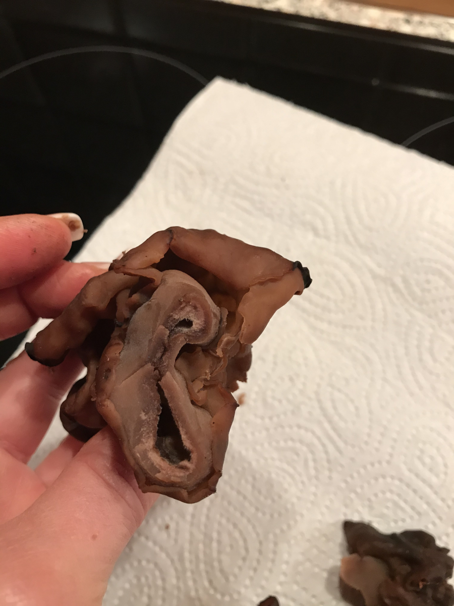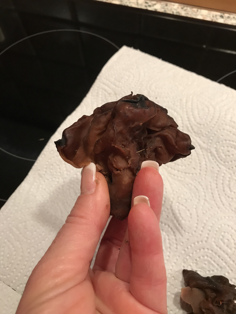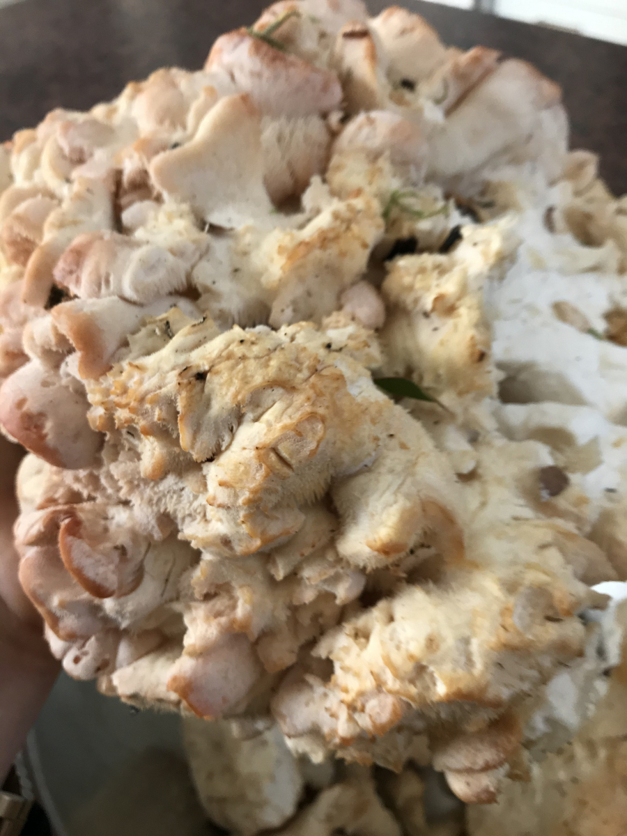 Er ist fest in der Konsistent, wuchs als Schmarotzer alleine oben auf einem Baumstumpf im Mischwald, ein kleiner Ableger war unten am Stumpf zu finden.