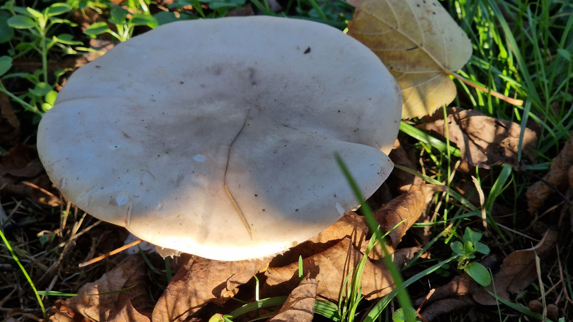 Pilz auf Wiese, ca. sechs Fruchtkörper. Die Farbe der Hutoberfläche und der Gesamthabitus führen mich zu der Vermutung. Geruch war süßlich, meine Tochter meinte "riecht nach weißer Schokolade"