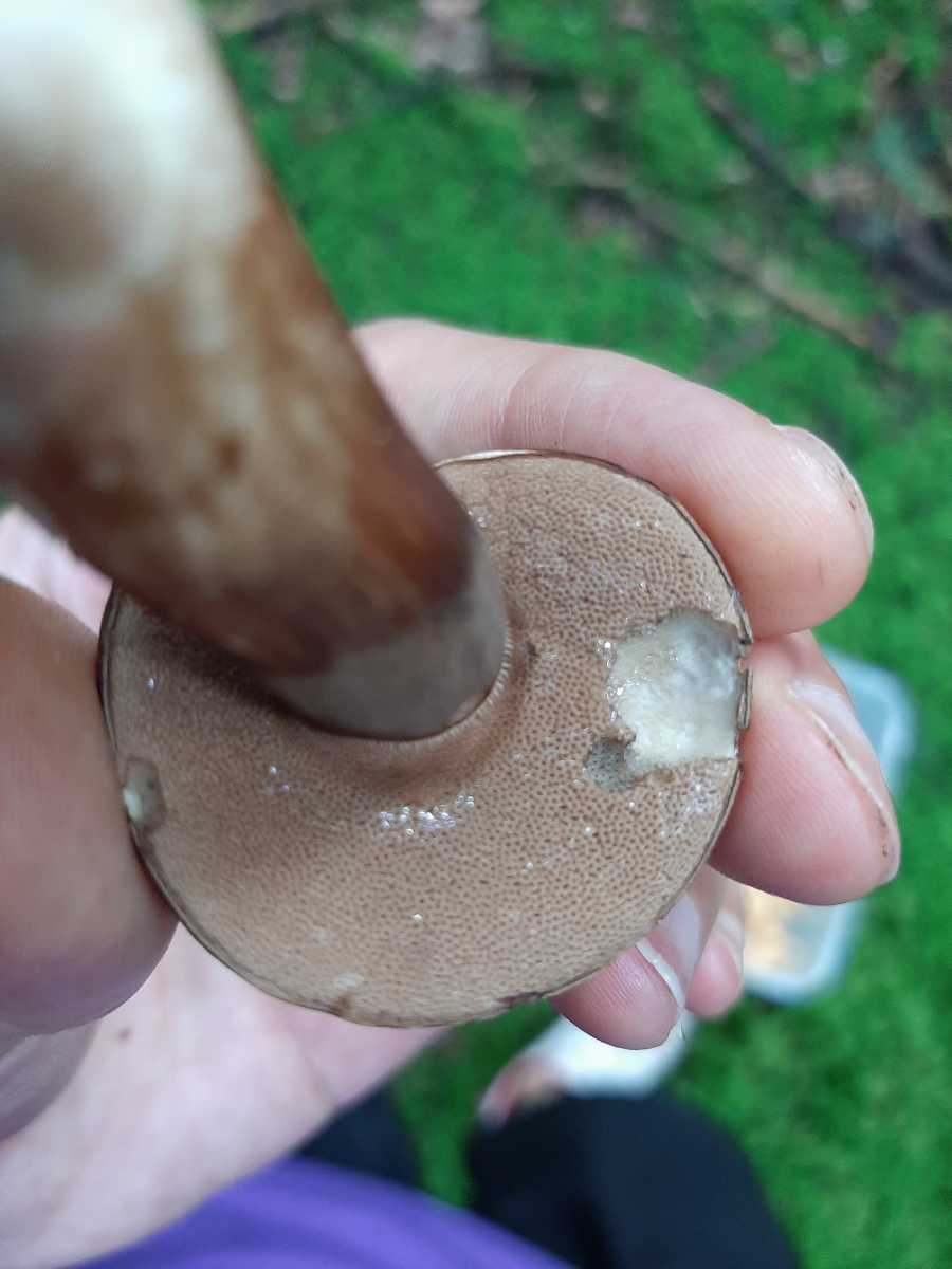 dort war noch ein kleinerer Pilz der gleichen Art und der hatte auch braune Röhren