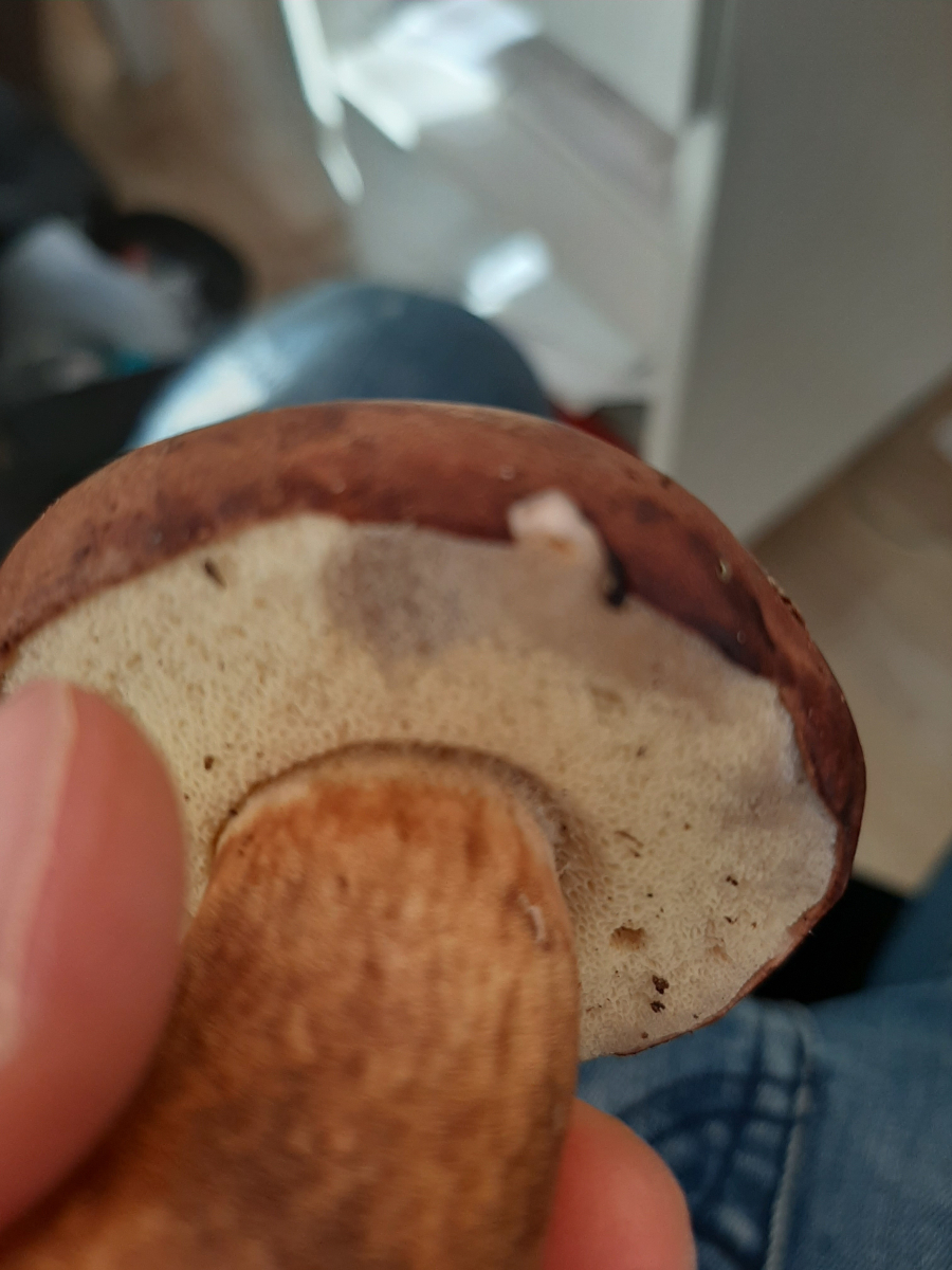 Also beim Steinpilz habe ich sofort den Frostschaden beim Aufschneiden gesehen, von außen war der knüppelhart weshalb ich ihn überhaupt mitgenommen habe. Das Bild möchte ich euch dennoch nicht vorenthalten .