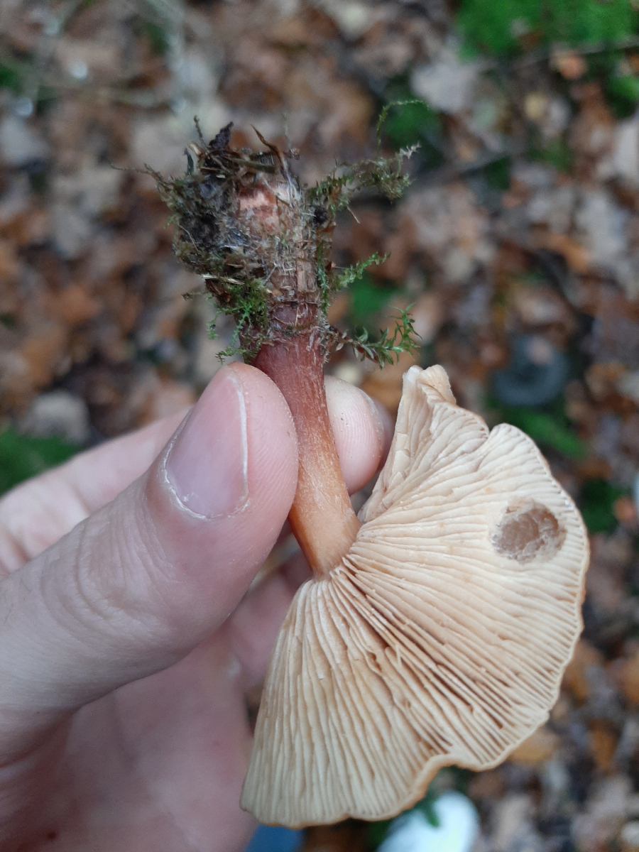 Als ich ihn gepflückt habe war ein goldgelber Kreis unten am Stiel und das restliche Pilzpfleisch war weiß wie auf dem Foto. Habe den Pilz im Wald gelassen daher kann ich das nicht weiter prüfen, für welchen Milchling würde das sprechen? Und auch ein Dankeschön.