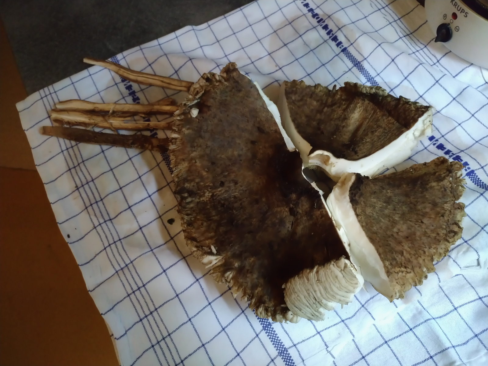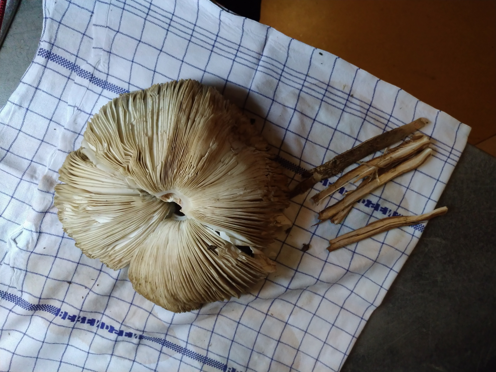 auf dem Weg zum Nachtdienst habe ich vorhin einen Riesenschirmling am Straßenrand erspäht, diesen musste ich sofort mitnehmen.