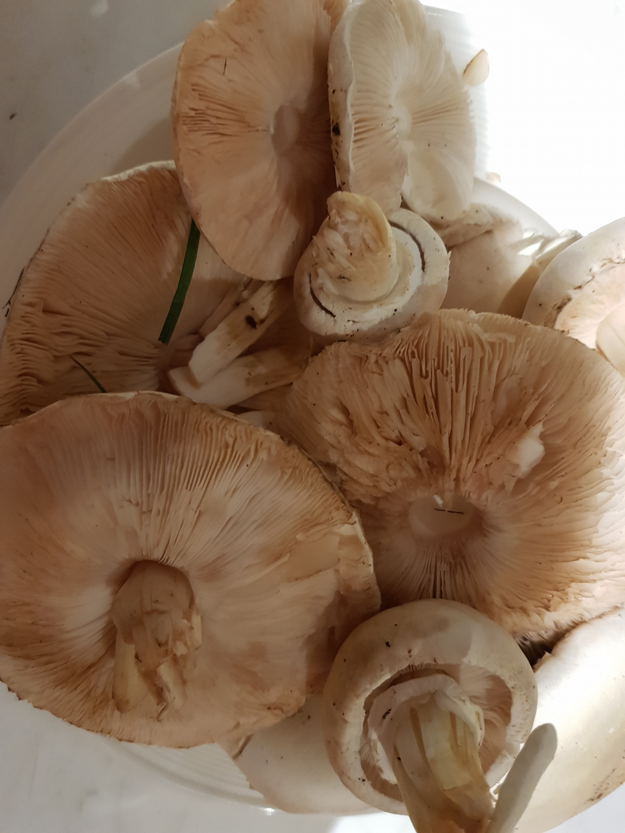hab heute auf einer Wiese am Leithaberg traumhaft schöne Pilze gefunden und dachte aufgrund von Geruch und Aussehen sofort an Wiesenchampignons. Allerdings sind die Lamellen weiß und wie ich herausfunden habe geht es da in Richtung Egerling.