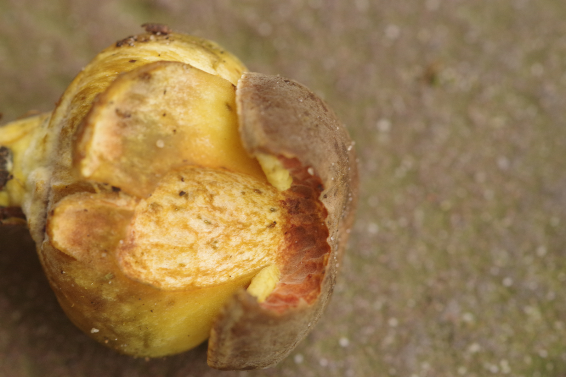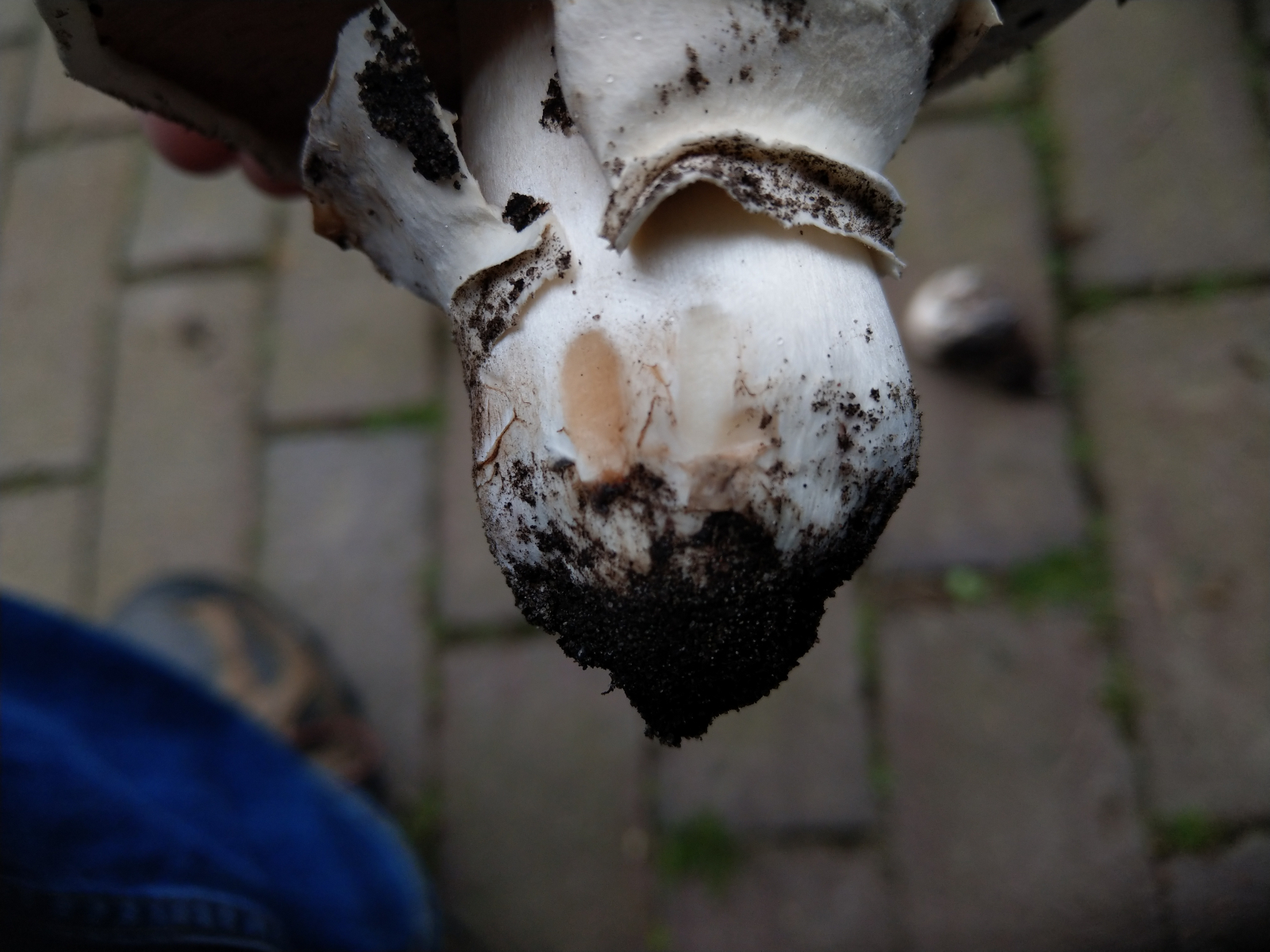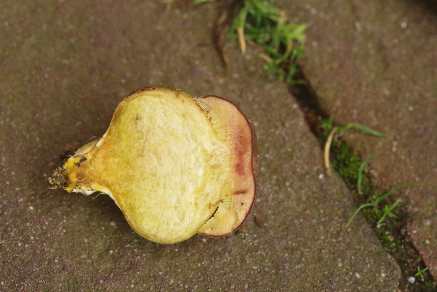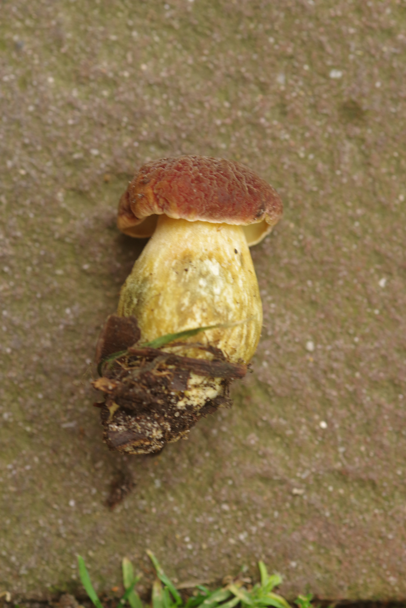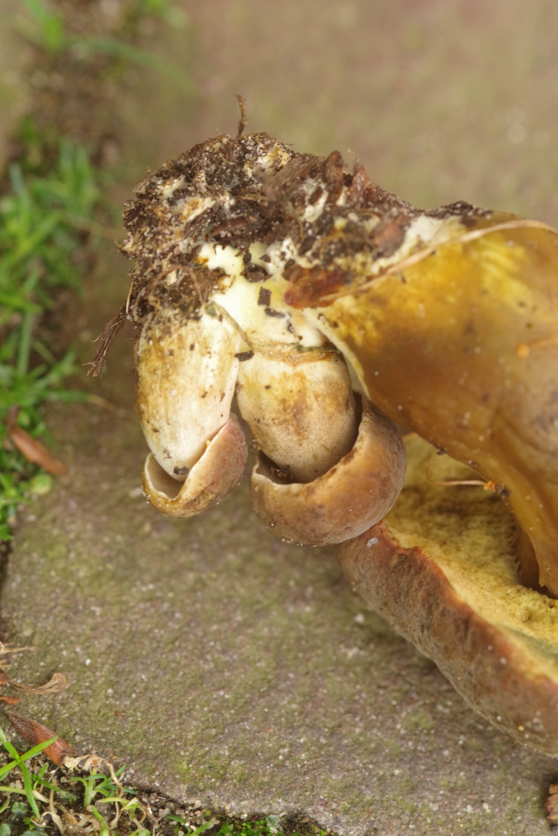 - Stiel wie der Hut gefärbt, tendenziell ocker/rötlich verfärbend (vorletztes Bild: rechts frisch angekratzt, links nach 1-2min)