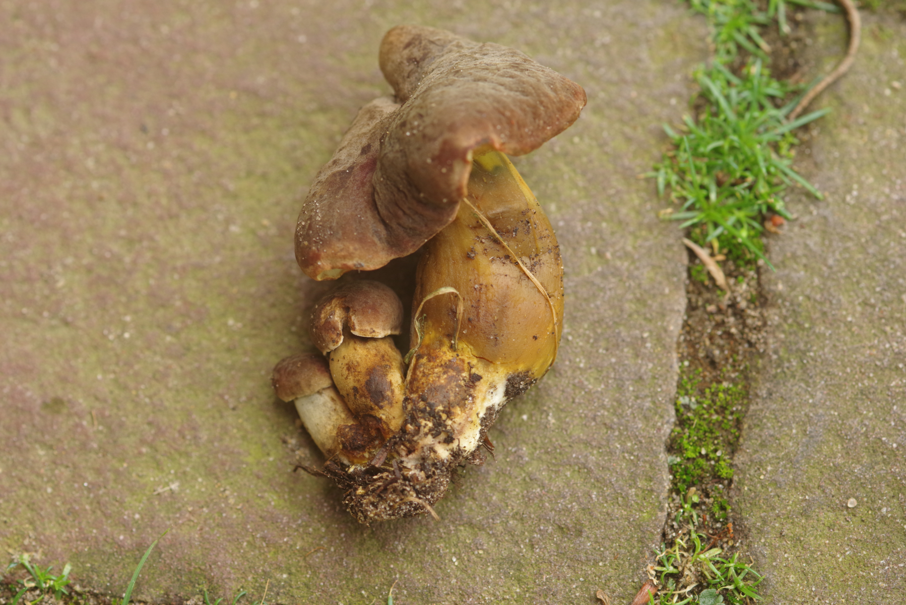 Mit der Pilzsammlerliteratur die ich hier habe komme ich nicht weit. Spaßeshalber mal die wichtigsten Merkmale bei 123pilze reingeklickt komme ich am ehesten bei Lanmaoa/Boletus/Leccinum fragrans (Goldröhrenschwamm, Starkriechender Röhrling) raus. Die schon etwas mitgenommen wirkende Dreiergruppe riecht auch tatsächlich auffallend stark, die anderen Exemplare aber weniger. Er wird als wärmeliebend beschrieben, was ja im Münsterland zumindest mal nicht völlig abwegig ist. Ist aber wohl auch ziemlich selten.