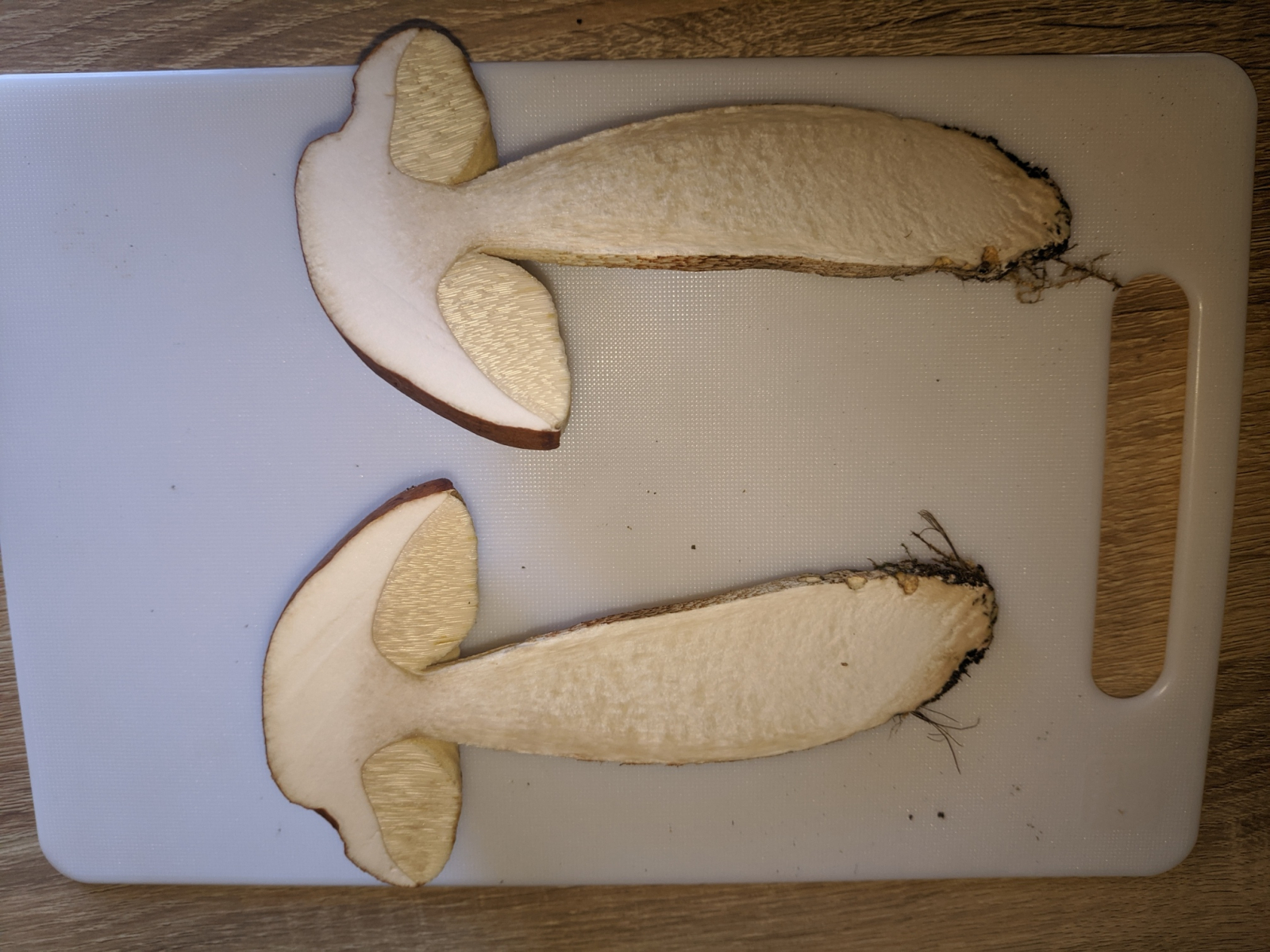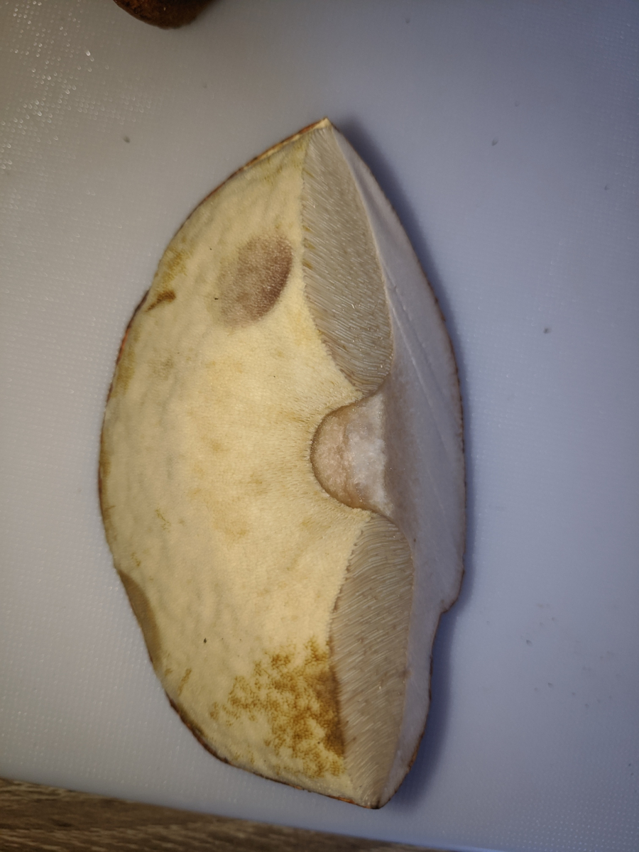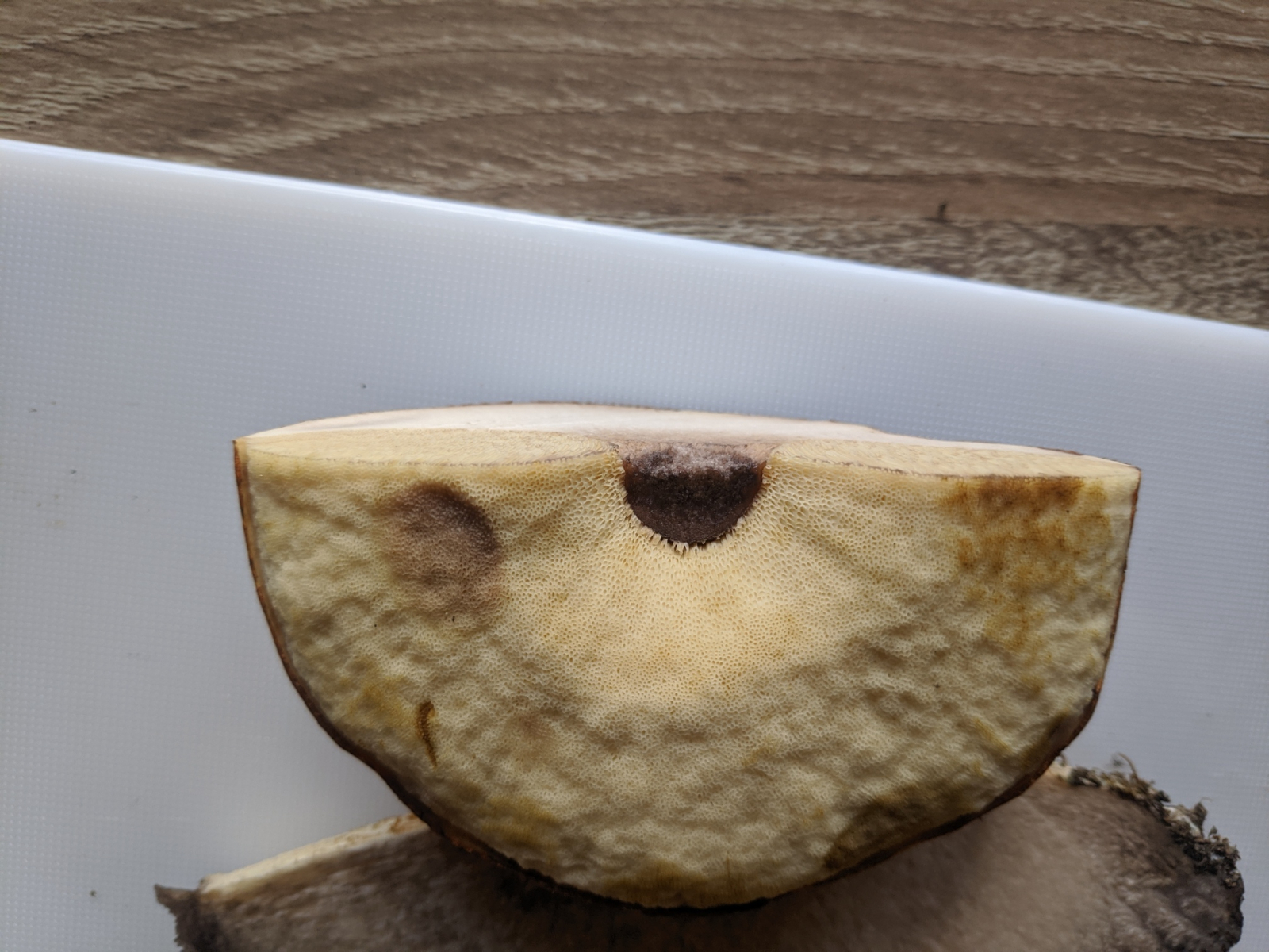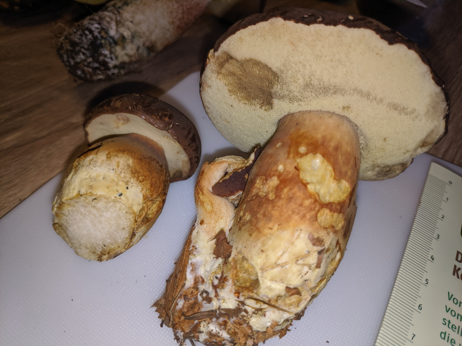 Bei den Maronen habt ihr natürlich recht. Von der Rotkappe habe ich noch Bilder angehängt, bei den Bäumen in der Nähe bin ich mir leider nicht mehr sicher, aber das könnte ich im Zweifelsfall nochmal nachschauen. Die Rotkappe verfärbt sich aber immer mehr in Richtung grauschwarz (sieht man schon ganz gut im letzten Bild), von daher würde ich davon ausgehen, dass Pixie da auch richtig liegt.