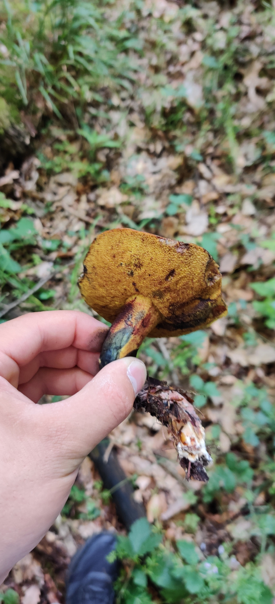 CYANOBOLETUS PULVERULENTUS Schwarzblauender Röhrling..... soll aber in rauen Mengen Krebserregend sein...