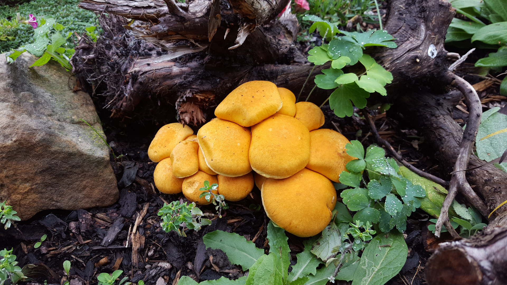 in unserem Garten haben wir jedes Jahr eine wirklich lecker aussehende Pilzgruppe. Einige Male habe ich schon versucht diese zu bestimmen. Bücher, Internet... Ich bin aber noch nie fündig geworden.