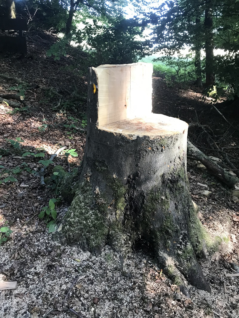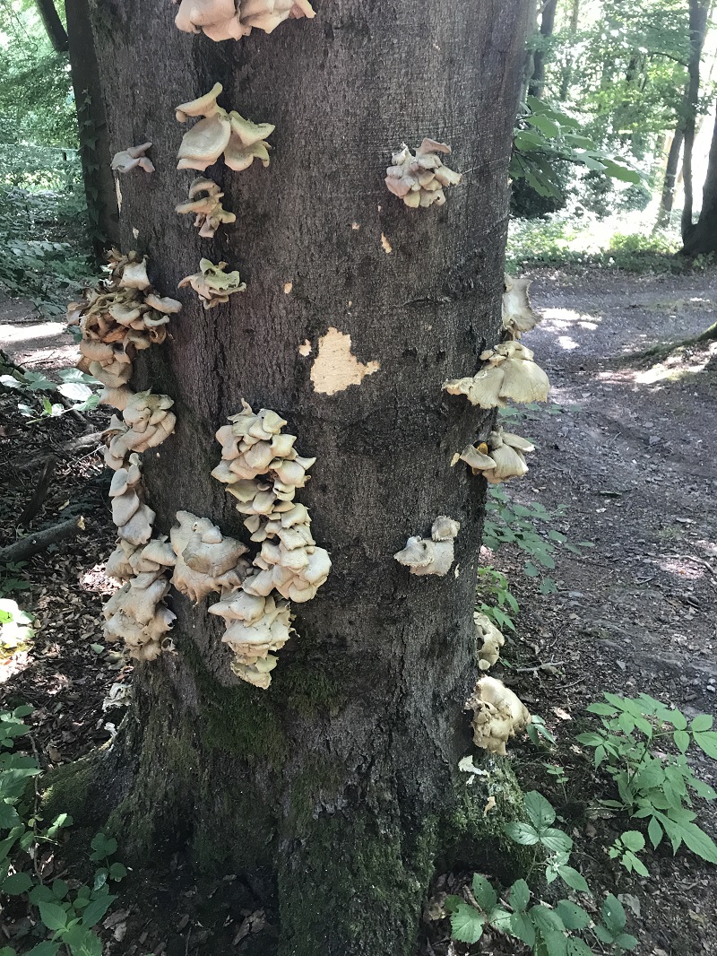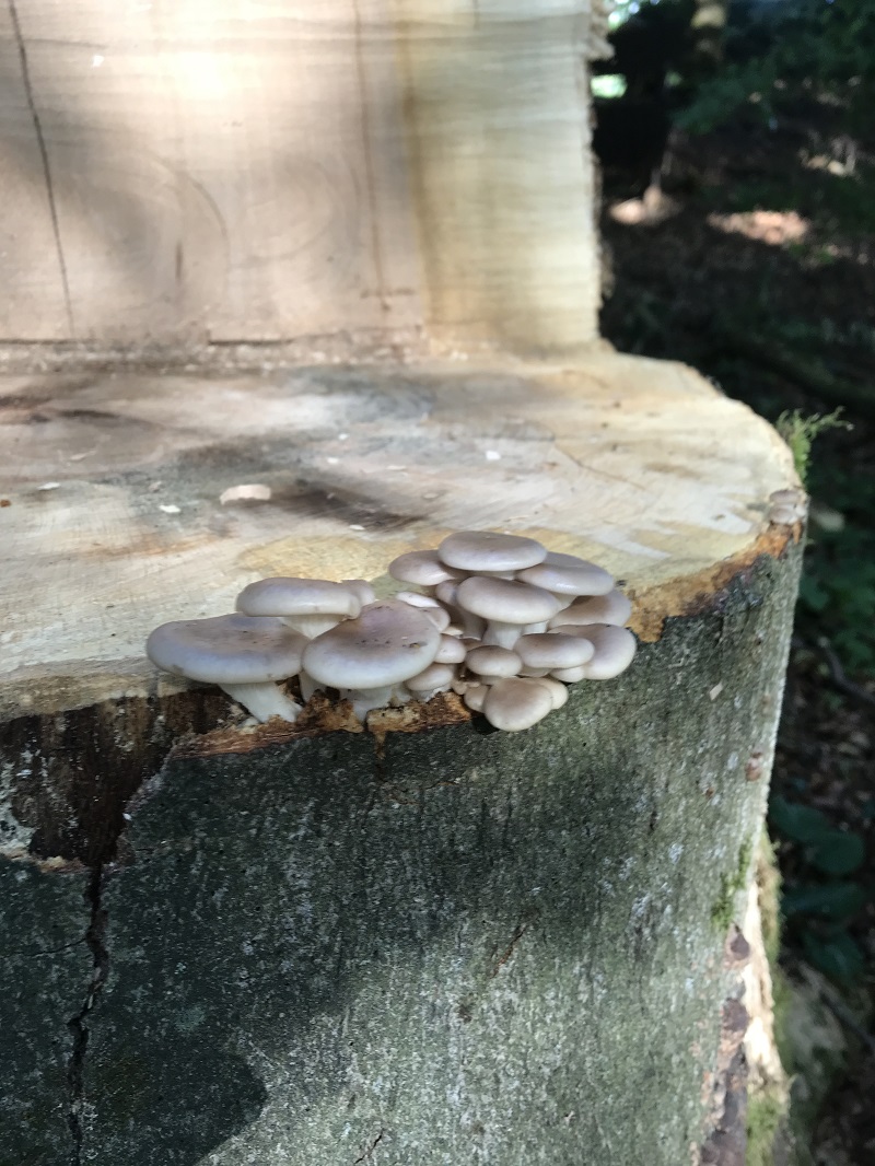 Die Buche in der Nähe, die auch gut Seitlinge lieferte ist jetzt nur noch ganz kurz.