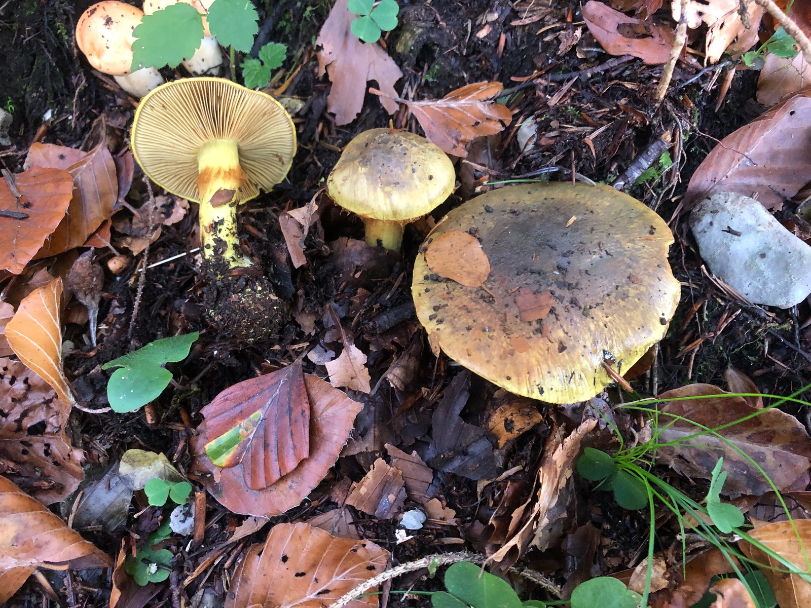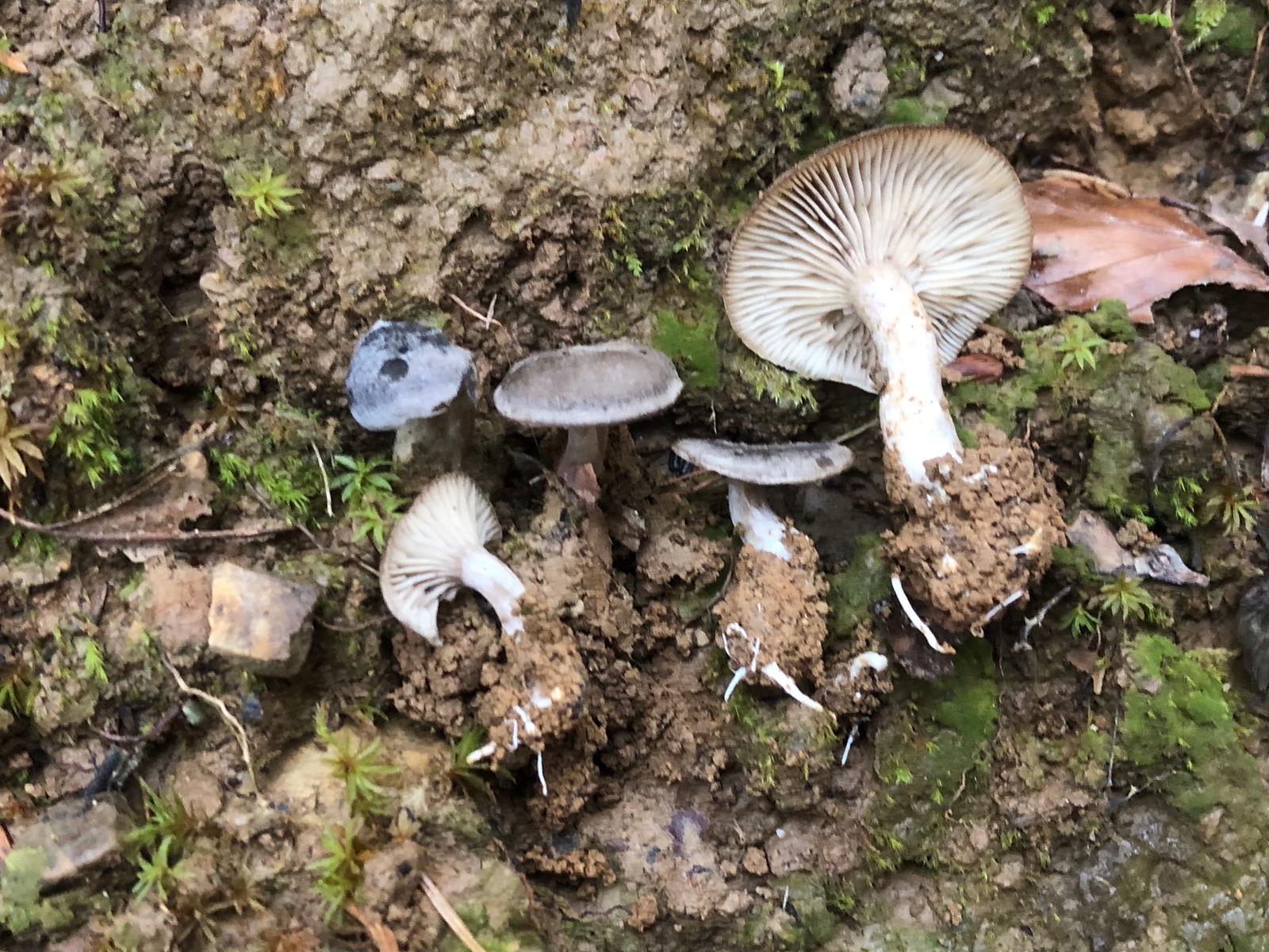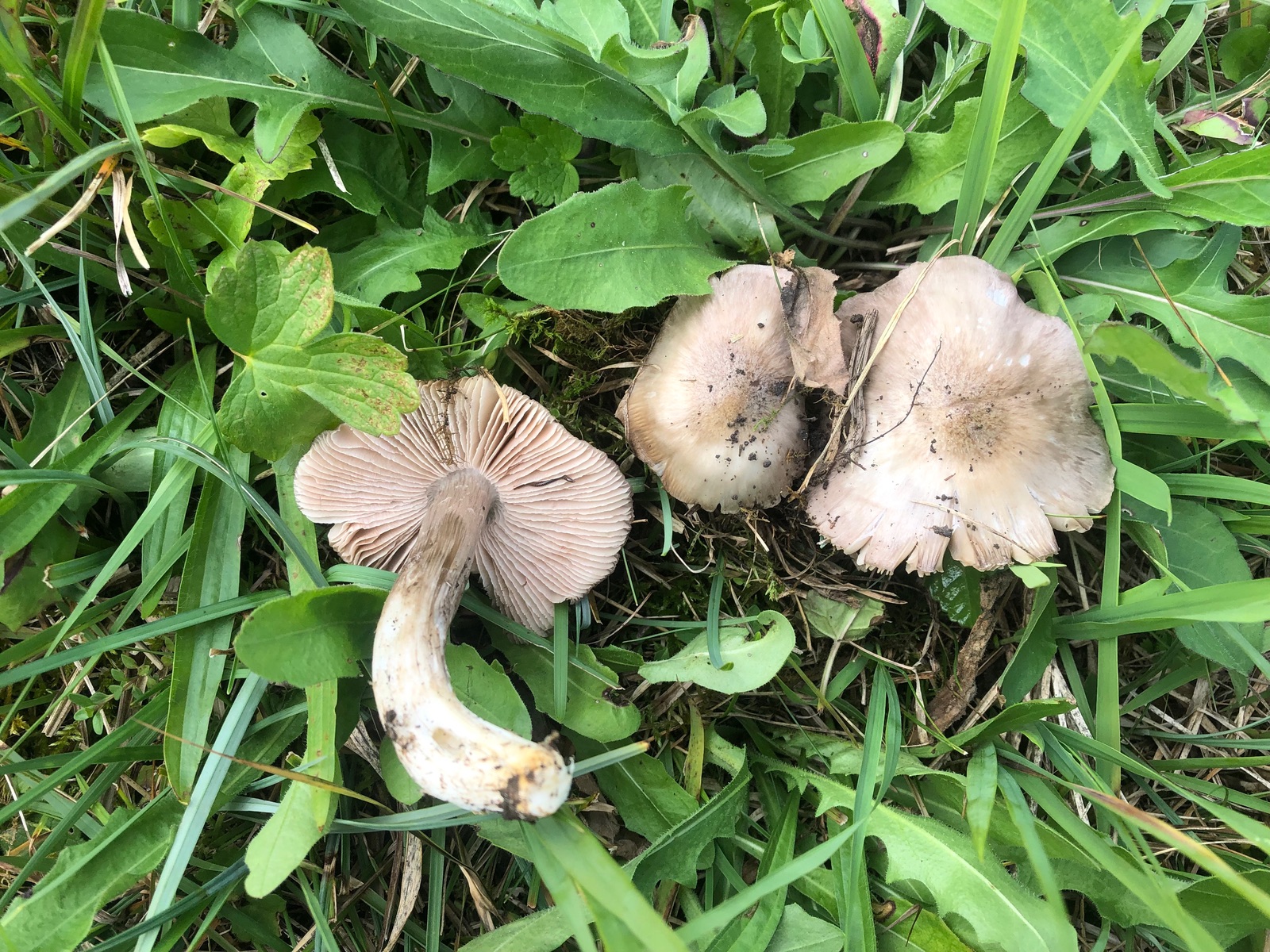 4. Verfärbung: N. pseudoingrata: keine Verfärbung, auch nicht bei älteren Verletzungen (maximal leicht rötend beim Trocknen); N. ingrata: rötet bei Verletzung, vA an den Lamellen, hat fast immer auch jung schon dunkelrot verfärbte Stellen von älteren Verletzungen (im Bild am Hut der linken beiden Fruchtkörper zu erkennen, oft auch am Stiel