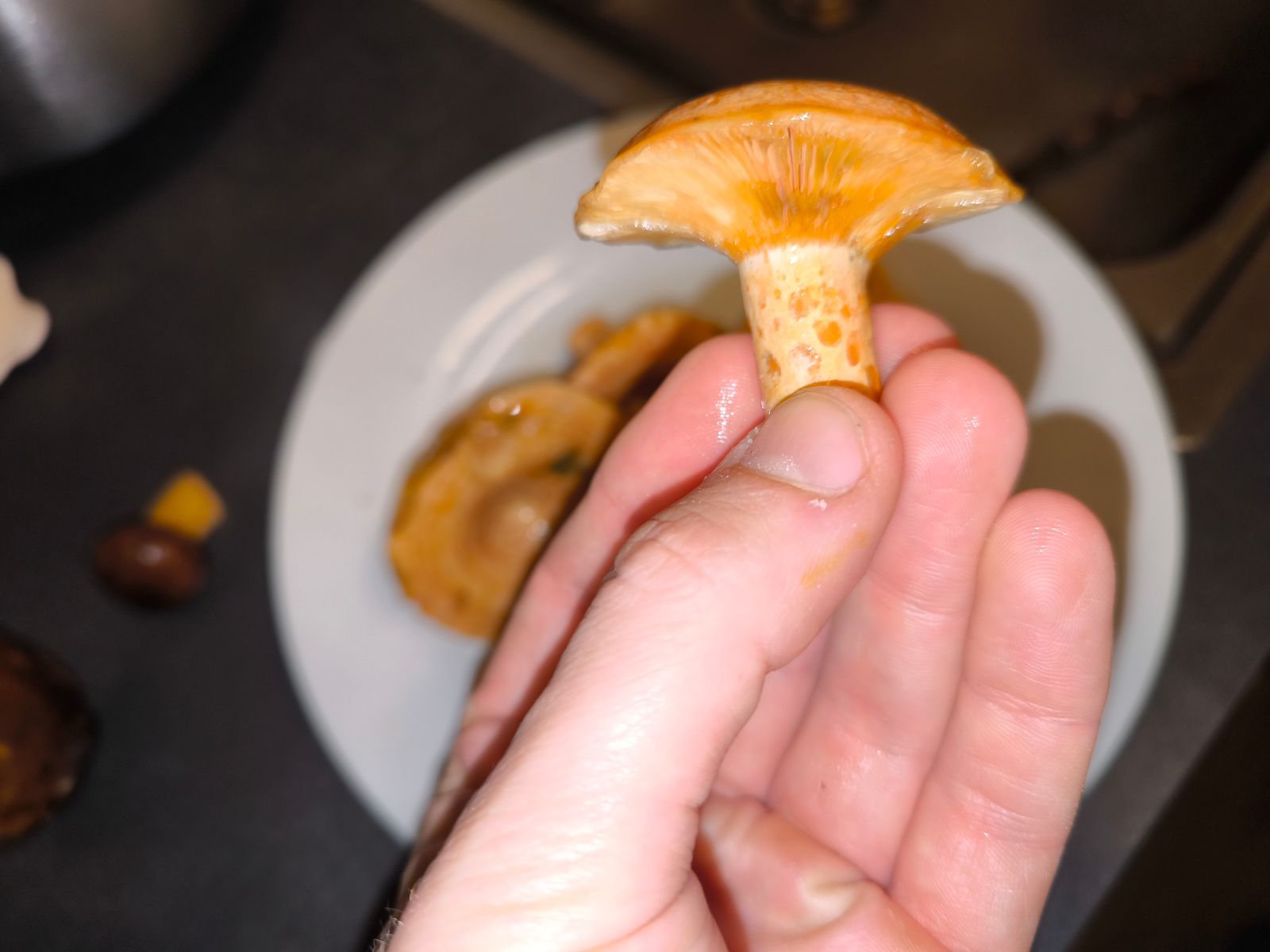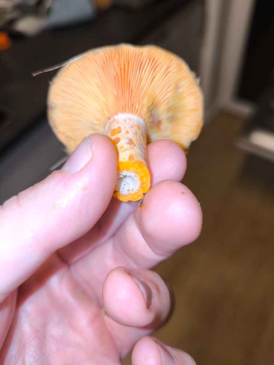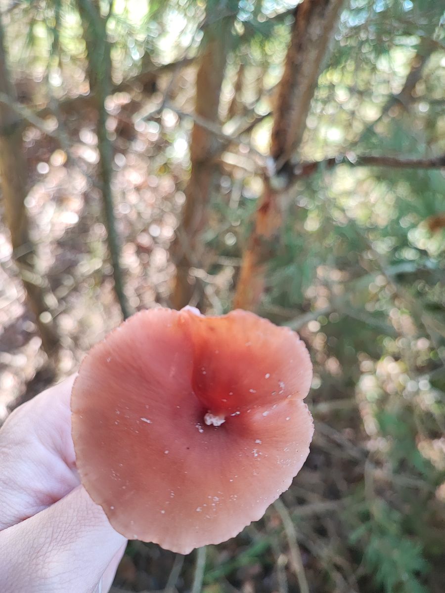 Guten Abend, liebes Forum. Heute war ich in einem, mir neuen, Wald unterwegs und sah überall riesige Reizker rumstehen. Ich konnte es erst nicht glauben, da sie wirklich auf dem Weg standen und groß waren. Teilweise krempelten sich die Ränder schon hoch und die Reizker wirkten sehr blass. Sie waren aber auch total nass vom Regen. Sie hatten teilweise Löcher, die allerdings auch eher wie "durchgeregnet" aussahen, als überreif. Man konnte die typische Farbe und auch Grüntöne erahnen. Es wirkte, als wären sie ausgewaschen. Die Pilze selbst fühlten sich "Reizker-typisch" an, rochen nach Frucht und bluteten schnell. Aber aufgrund der Blässe und der aufgestellten Schirme habe ich nichts mitgenommen.