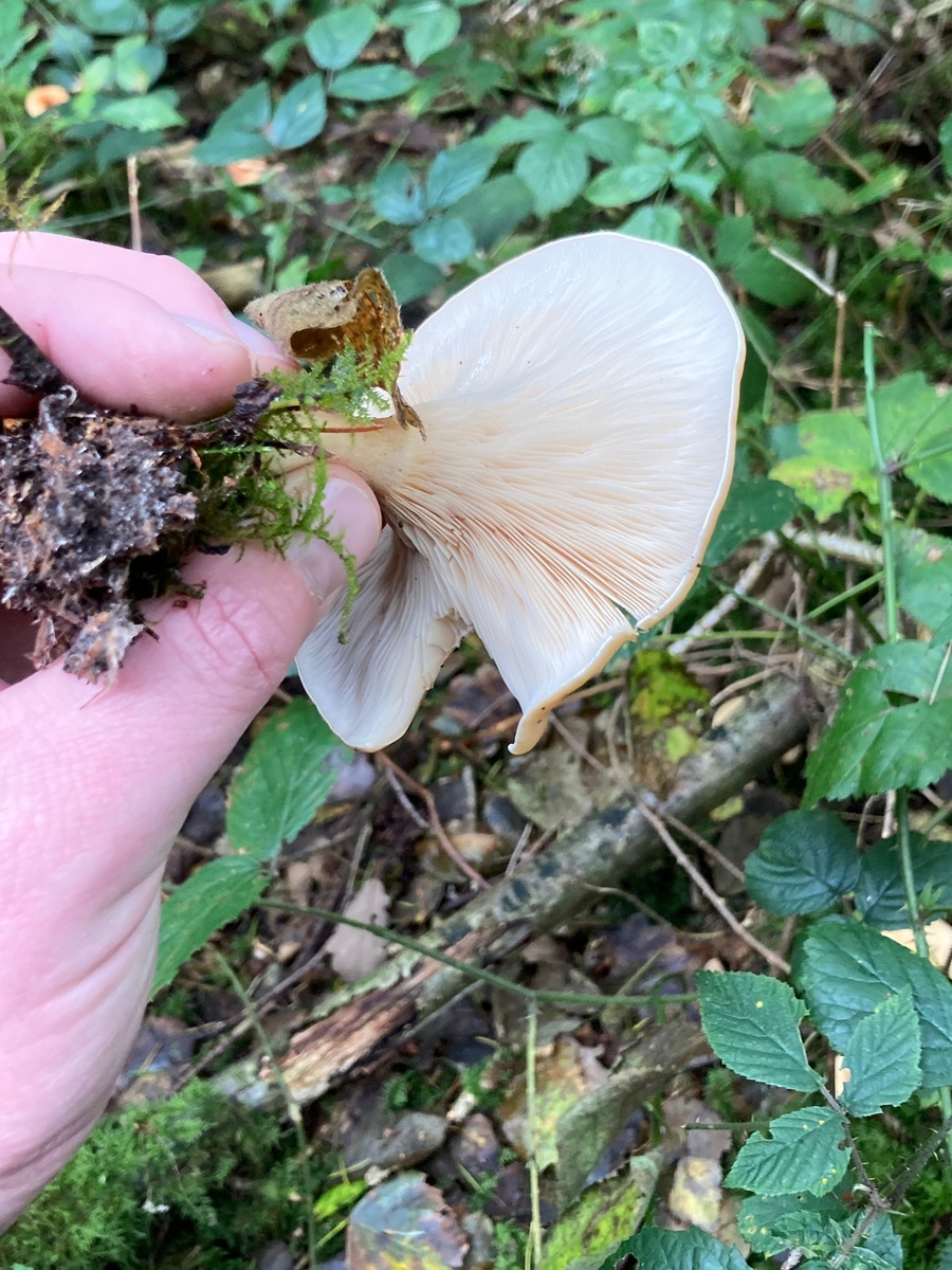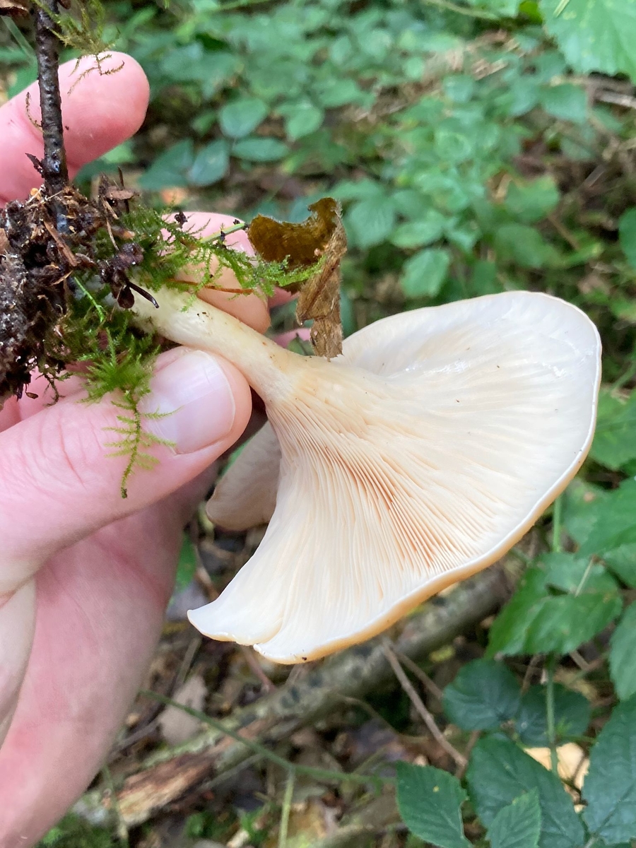Einige Exemplare haben Grübchen am Stiel. Sie riechen richtig fruchtig, etwas pilzig, eher wie ein Multivitamin-Saft.