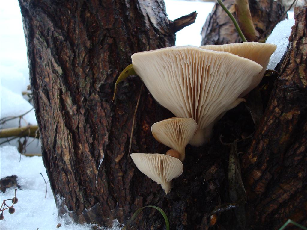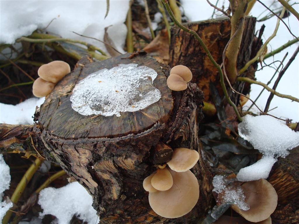 Nachdem der schöne Schnee nun fast weg iss,habe ich heut Vormittag am Stumpen einer Korkenzieher Weide diese Pilze entdeckt.Der größte misst etwa 5cm Hutdurchmesser und 4cm Höhe.Sie sind noch schön fest,haben also keinen Frostschaden.Ich denke mal es sind Austernseitlinge,mein Erstfund,was denkt Ihr dazu?