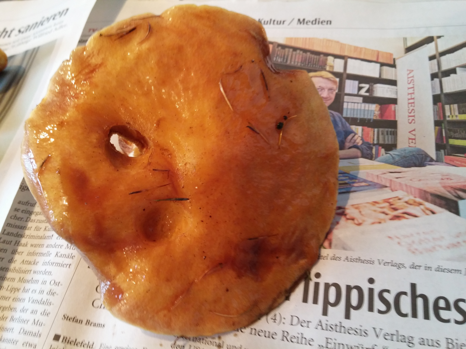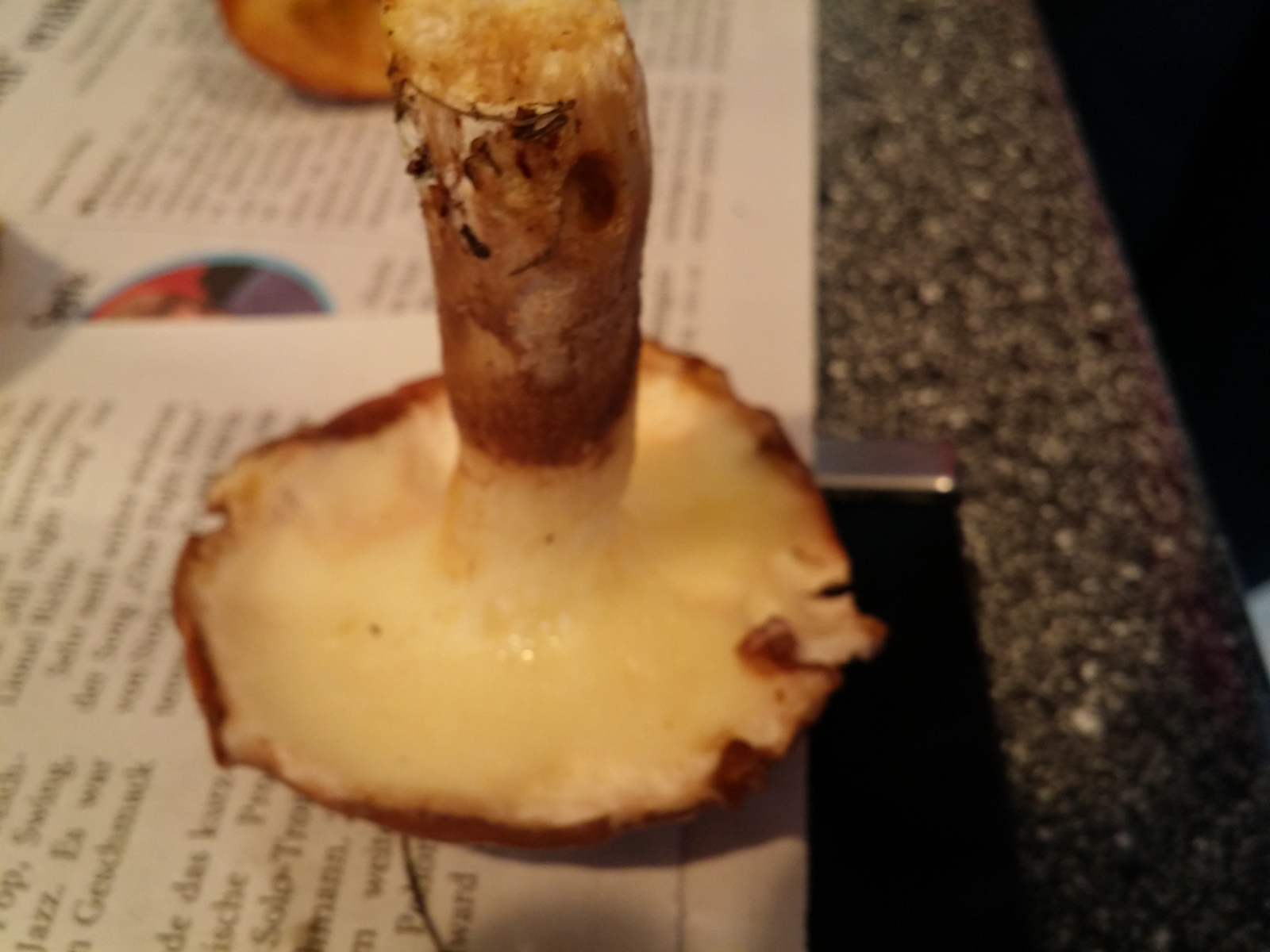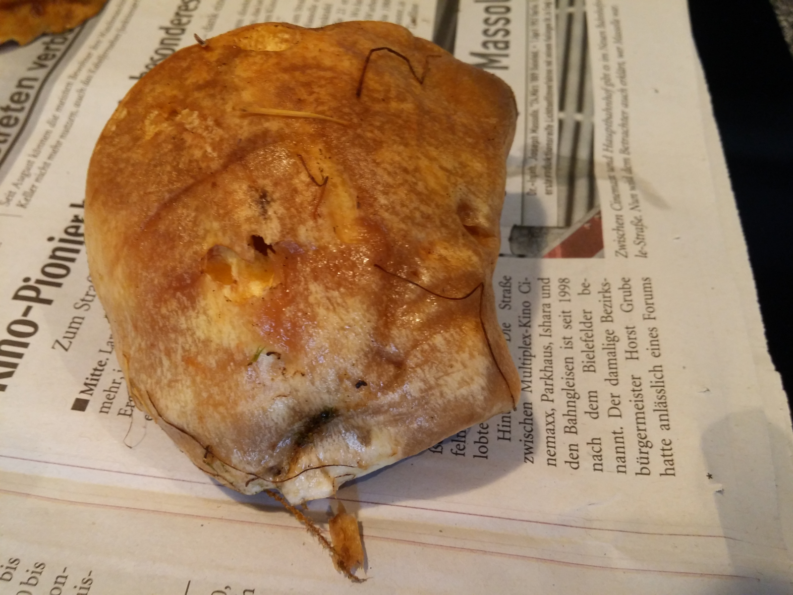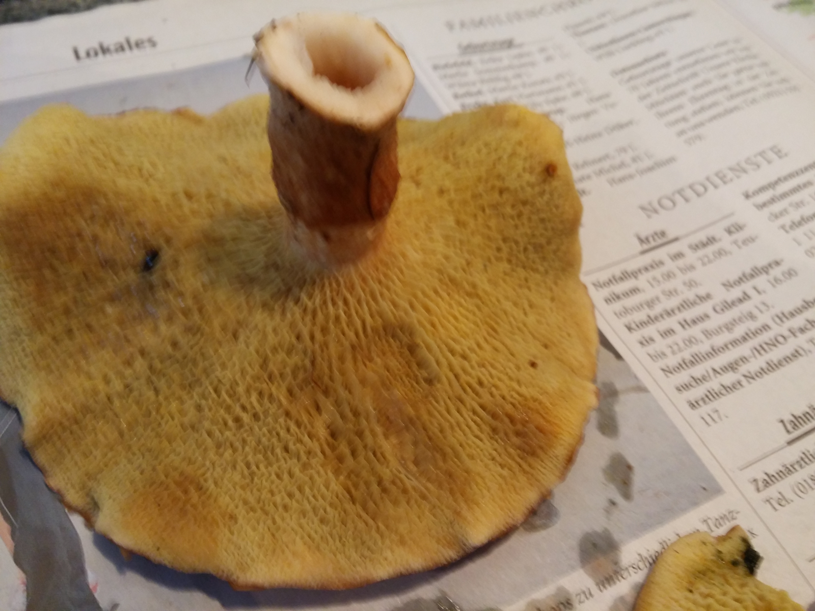 Ich habe doch die Hohlstielrörlinge aufgehoben und sie mir auf ein Focaccia gelegt mit Salz und Pfeffer und mit Käseüberbacken. Sehr lecker.