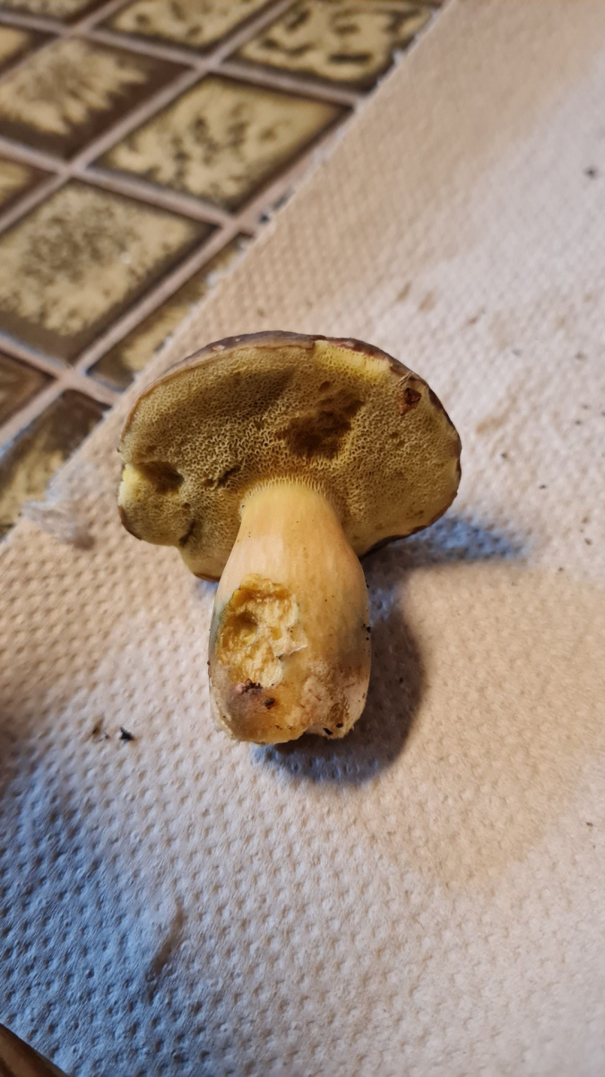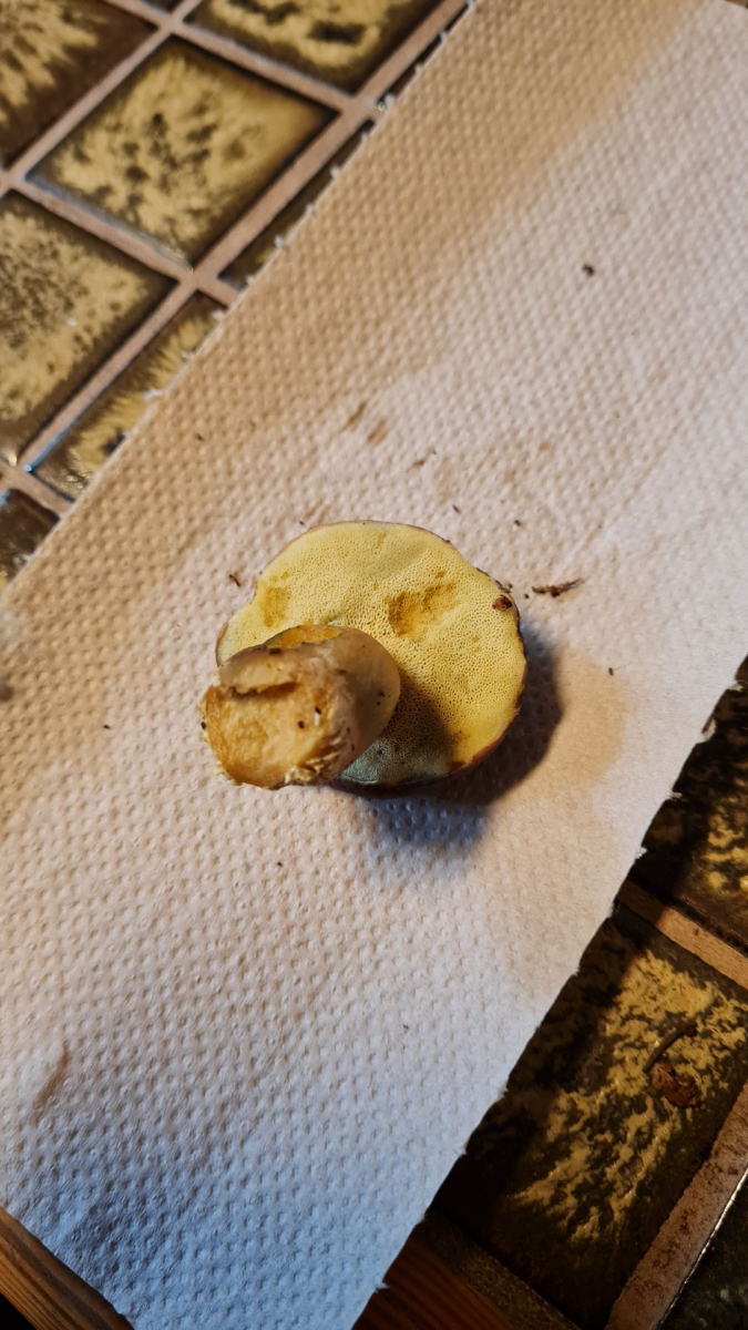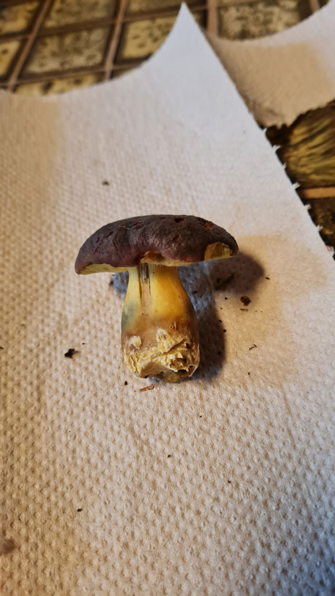 Beim Laufen hab ich zufällig zwei Maronen, einen Rotfußröhrling und dieses Exemplar gefunden (Mischwald, Buchen in der Nähe). Röhren sind sehr gelb, Hut sehr dunkel. Dankeschön schon mal 😊