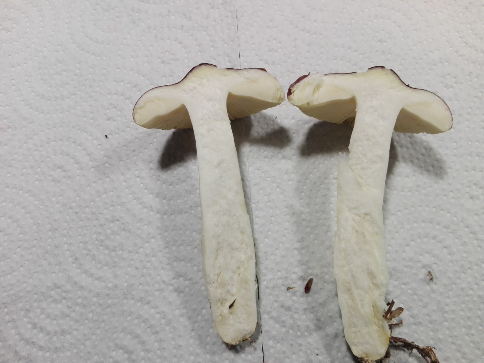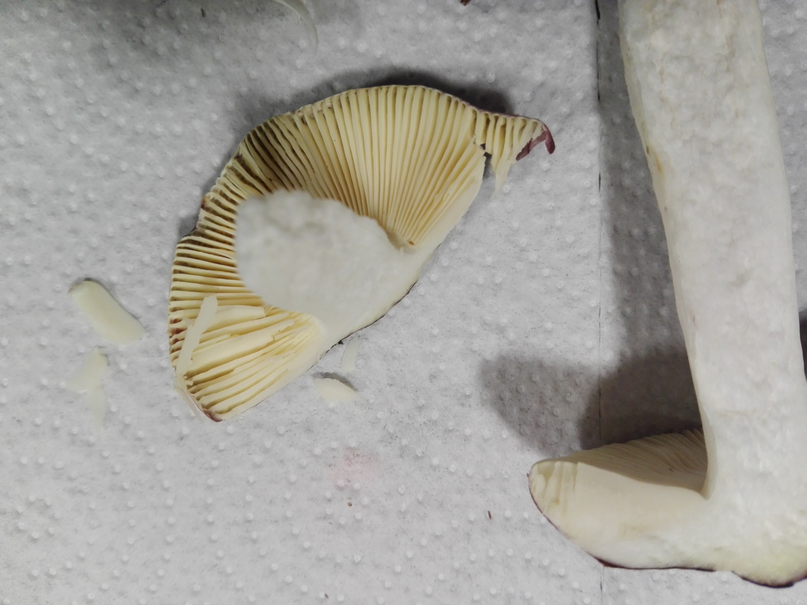 Aufgrund der splitternden Lamellen, des Stiels, der wie Styropor bricht und der Beobachtung, dass die Pilze zudem nicht milchen, vermute ich die Gattung Russula.