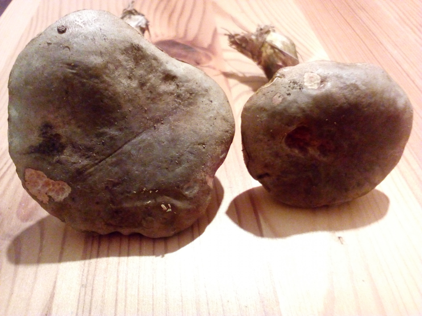 Hier die Fotos, die Unterseite färbt sich bei Druckstellen dunkel blau bis lila.