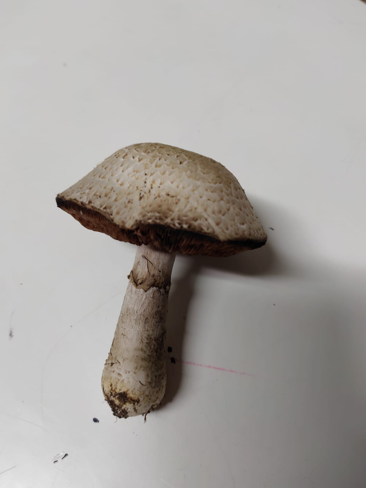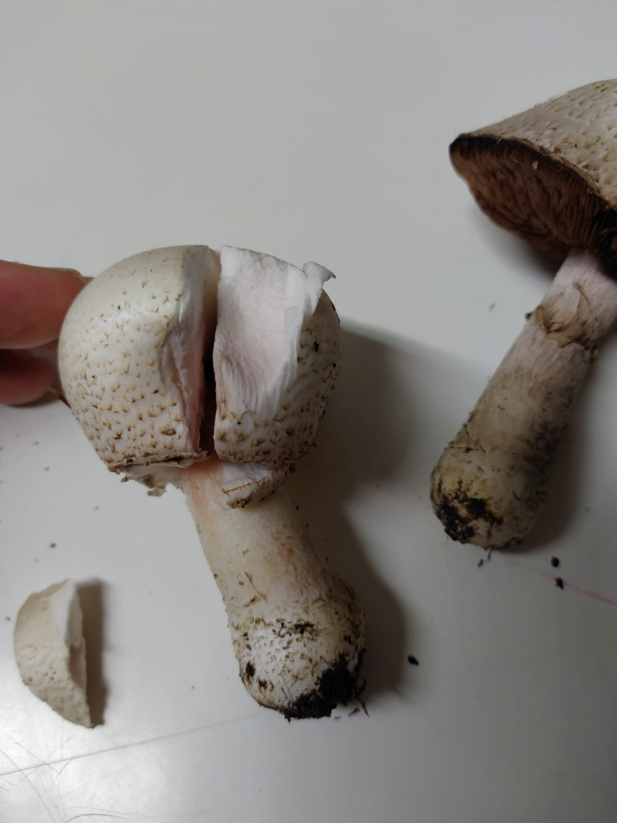 auf einer Wiese im Hexenring um einen Baum gefunden, sieht für mich aus wie ein Wiesenchampignon, hat aber eine leichte Knolle.