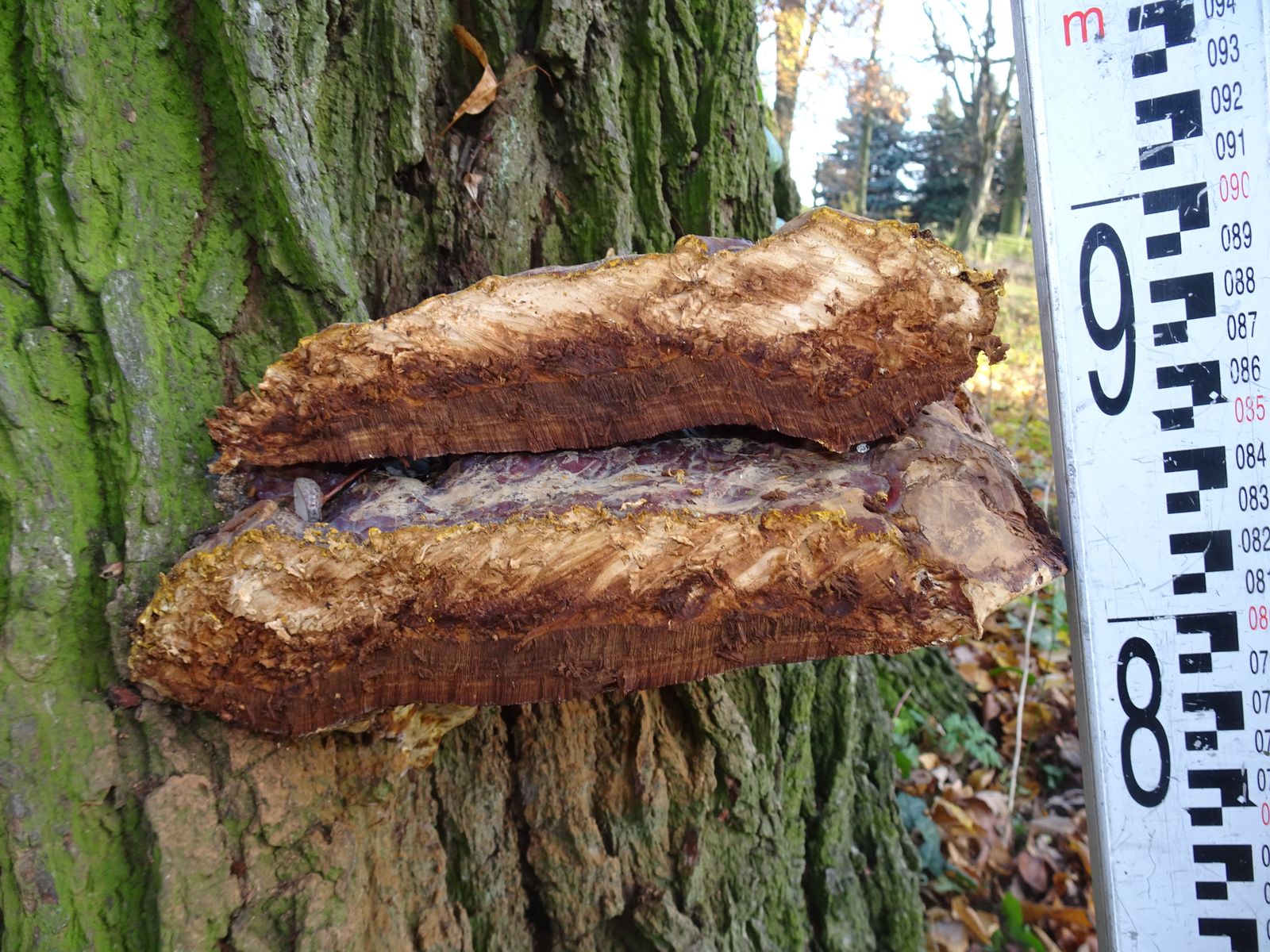 Vorab: Es handelt sich bei dem gezeigten Pilz zweifelsfrei um den Harzigen Lackporling.