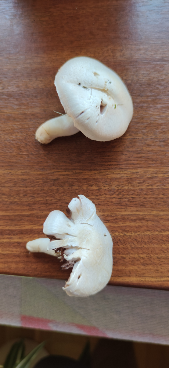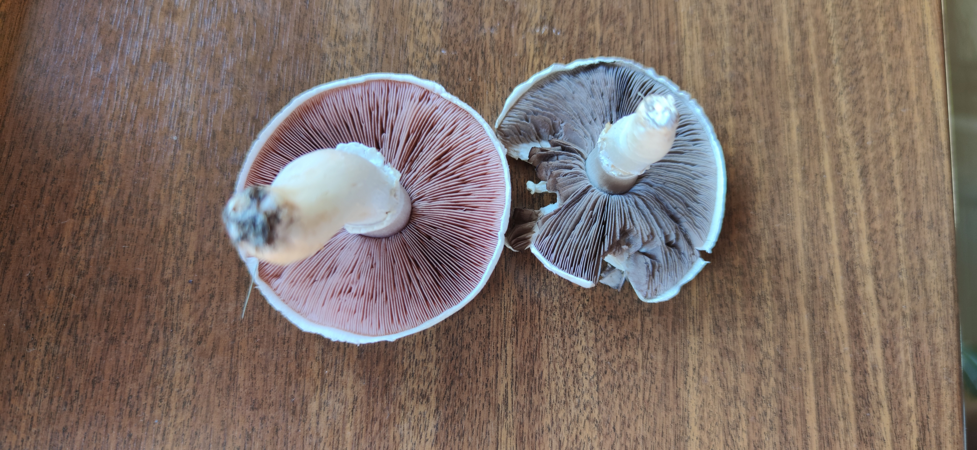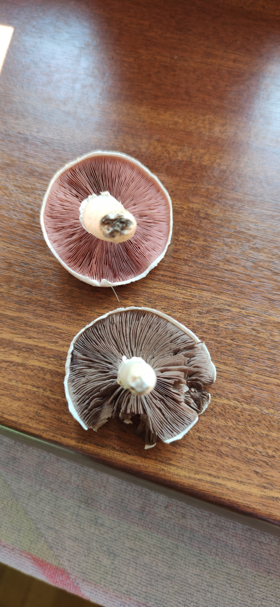 handelt es sich bei den zwei Pilzen, die ich gestern auf der Wiese im Garten direkt nebeneinander gefunden habe um Wiesenchampignons? Sie riechen auf jeden Fall sehr nach Champignon.