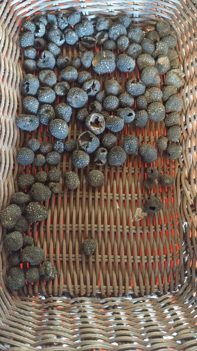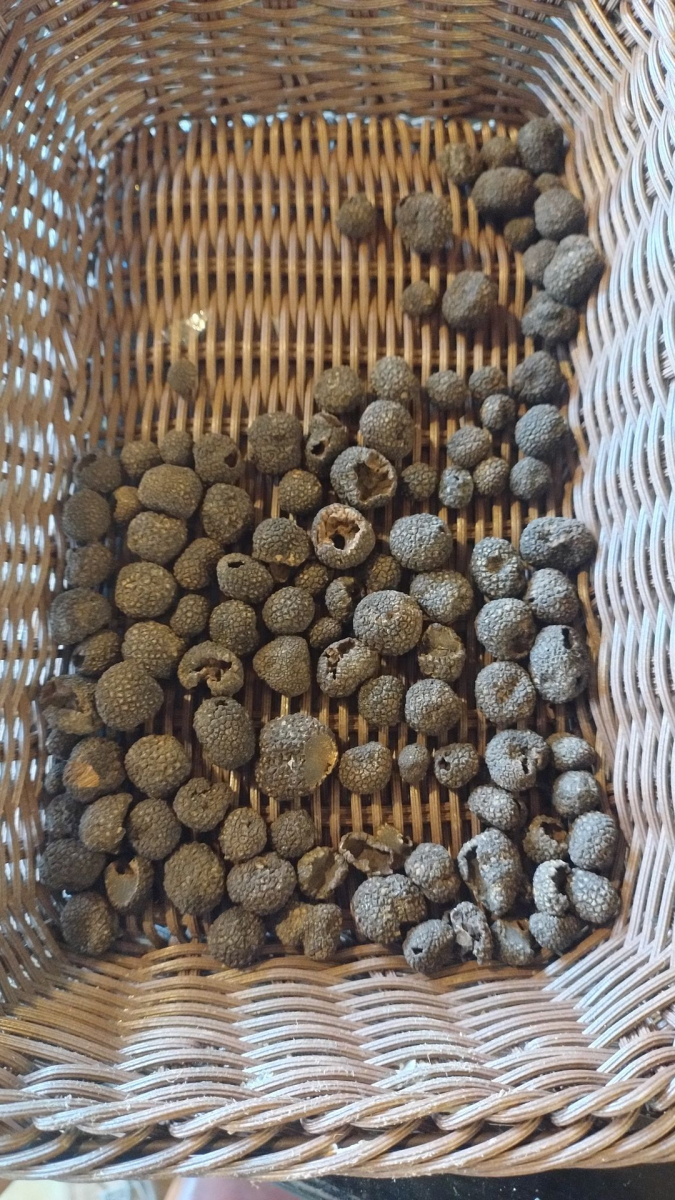 Ich mache meinen Namen wieder alle Ehre und bin erstaunt das "schwarze Trüffel" hier so preiswert sind. 10 cm Durchmesser nur 40 Euro die 100 Gramm. Die hier sind nur so groß wie Brombeeren und kosten ca.12 Euro pro 250 Gramm.