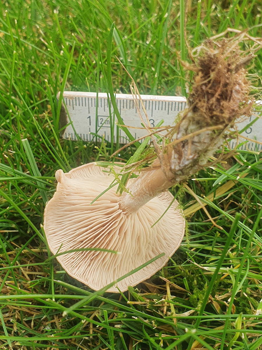 Ersteinmal herzlichen Dank für Eure Antworten. Leider kann ich nicht mehr liefern, weil ich einfach nicht an die Pilze herankommen konnte. Zum Einen eingezäunt in einem Wildgehege, zum Anderen mitten im Schlehdorn - der Rote. Die anderen sind auf unserer Wiese, die gehen auch von unten. Ich gelobe Besserung