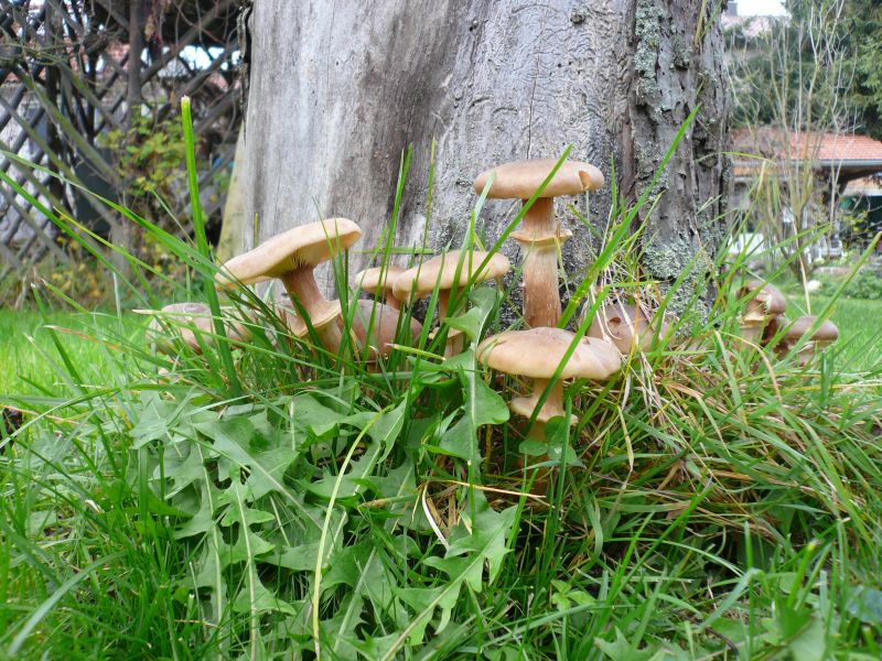 Pilze im Garten Gaggele 1. November 2008 Hab ich da einen Obstbaumhallimasch ?Der Busch steht wirklich unter einem Apfelbaum.