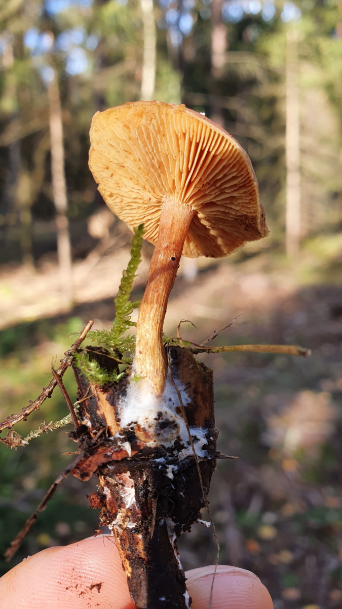 Es handelt sich um vier verschiedene Exemplare, jeweils gibt es nur den Stiel zu sehen. Geruch war bei allen neutral also nicht unangenehm. Bei drei der vieren sieht man auch den Wuchs an totem Holz.