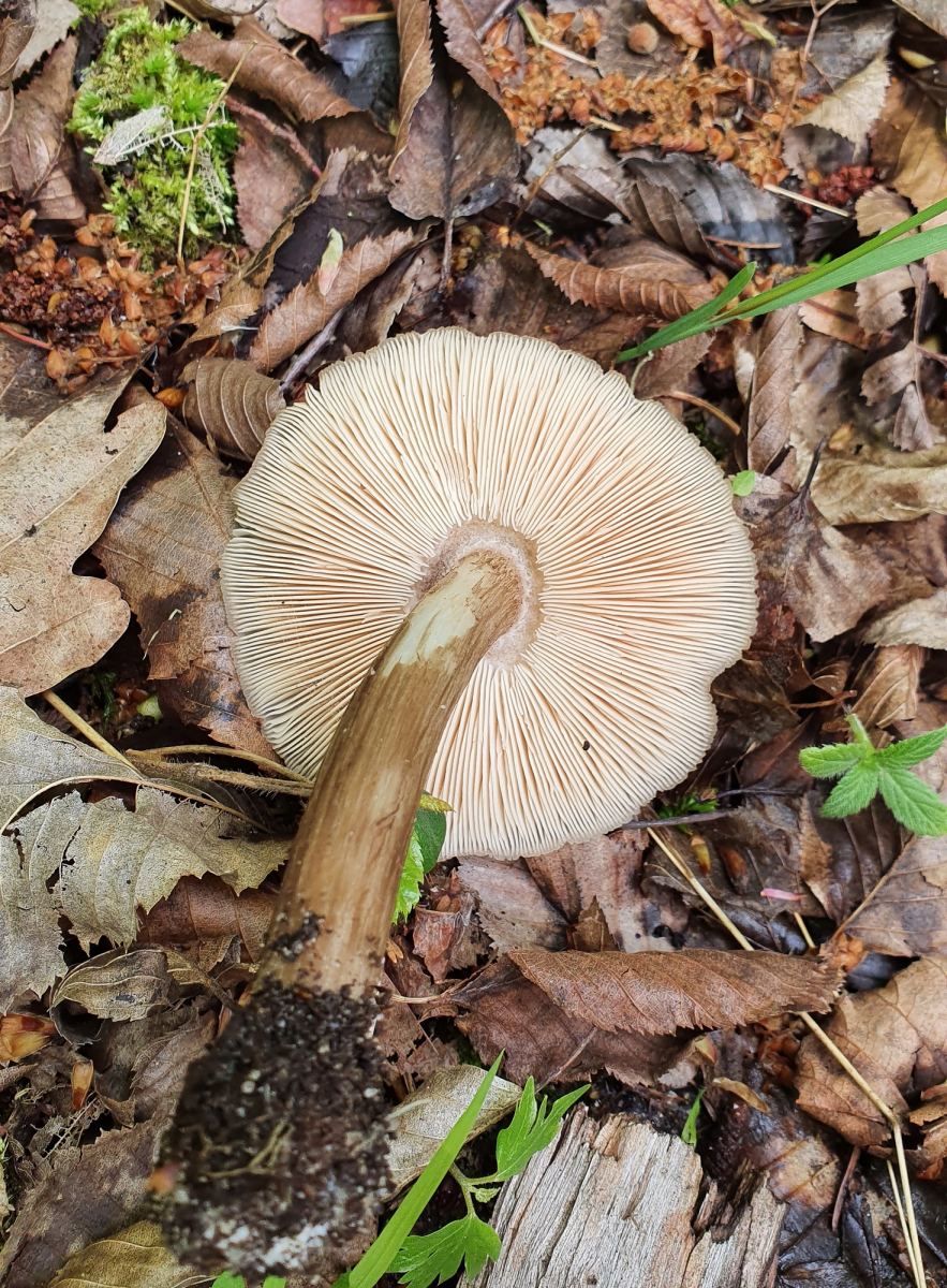 4. Tatsächlich hatte ich an einen Schleierling gedacht, vor allem weil Claudia hier kürzlich den selben Pilz hatte. Aber das Sporenpulver (leider kein Foto mehr) war nicht Rostbraun sondern Braun und die Lamellen (Foto ist beigefügt) sind frei.