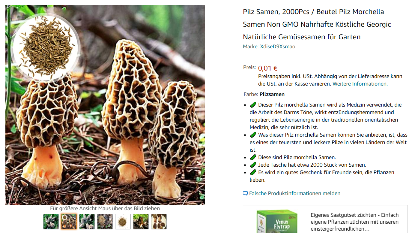 beim stöbern nach bald erscheinenden Pilz Büchern bin ich auf dieses Angebot (sofern man das bei dem Preis überhaupt kaufen kann) von "Pilz Samen" gekommen. Alleine der Name und die Beschreibung lösen ständiges Kopfschütteln aus. Aber seht selbst: