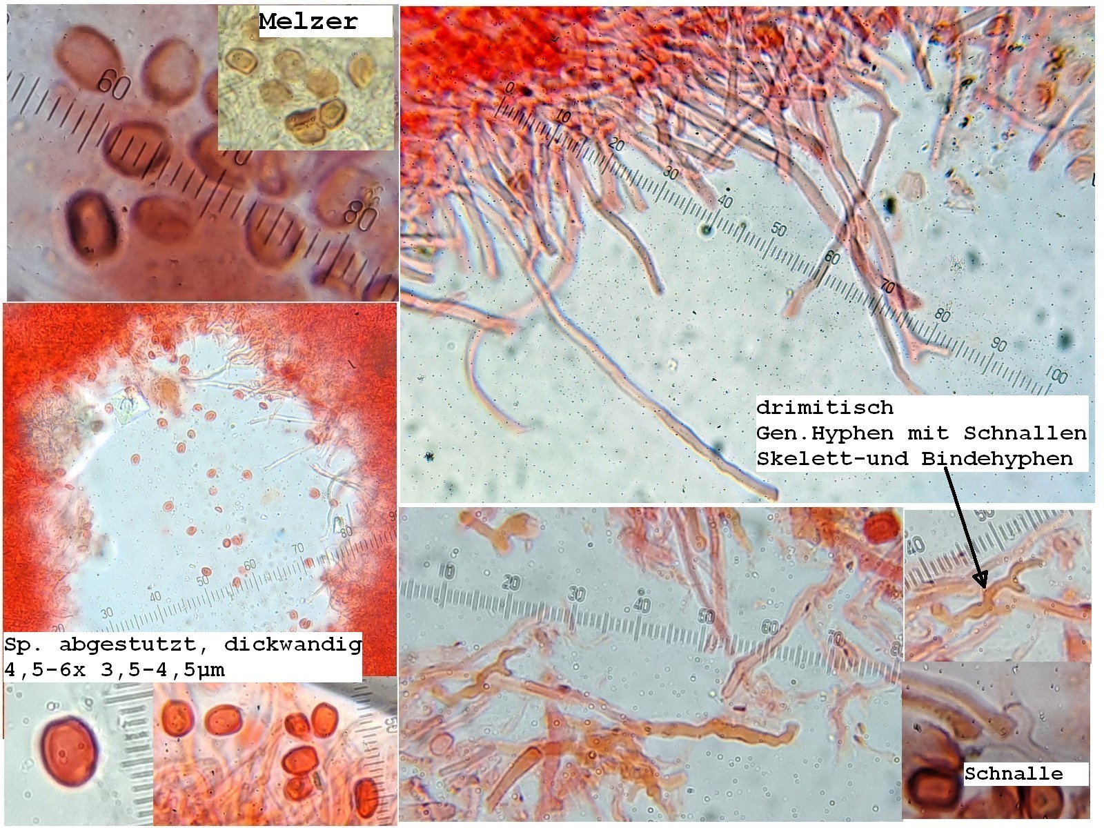 Alle relevanten mikroskopische Merkmale sind im Übersichtsfoto und weiteren Detailaufnahmen abgebildet und kurz beschrieben.